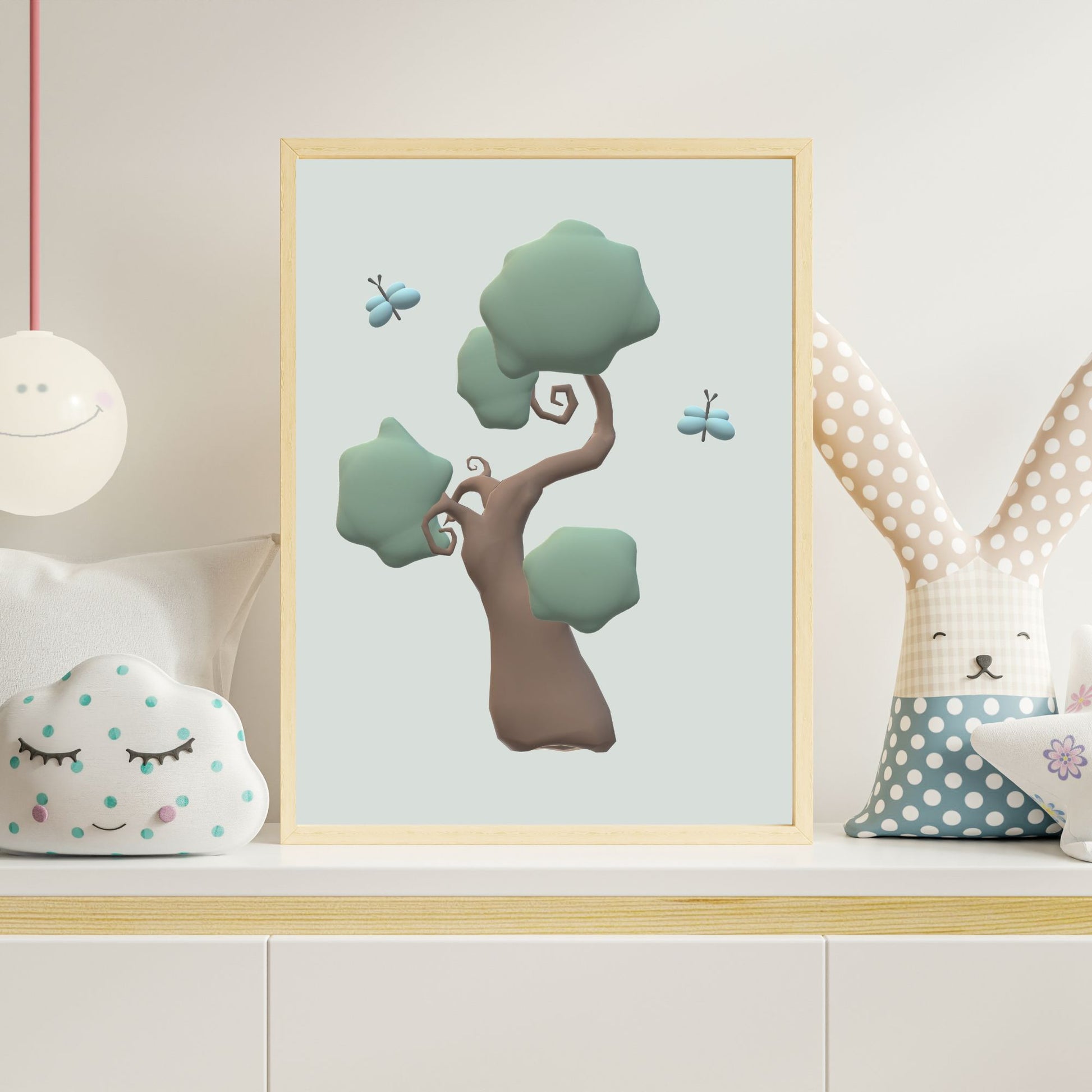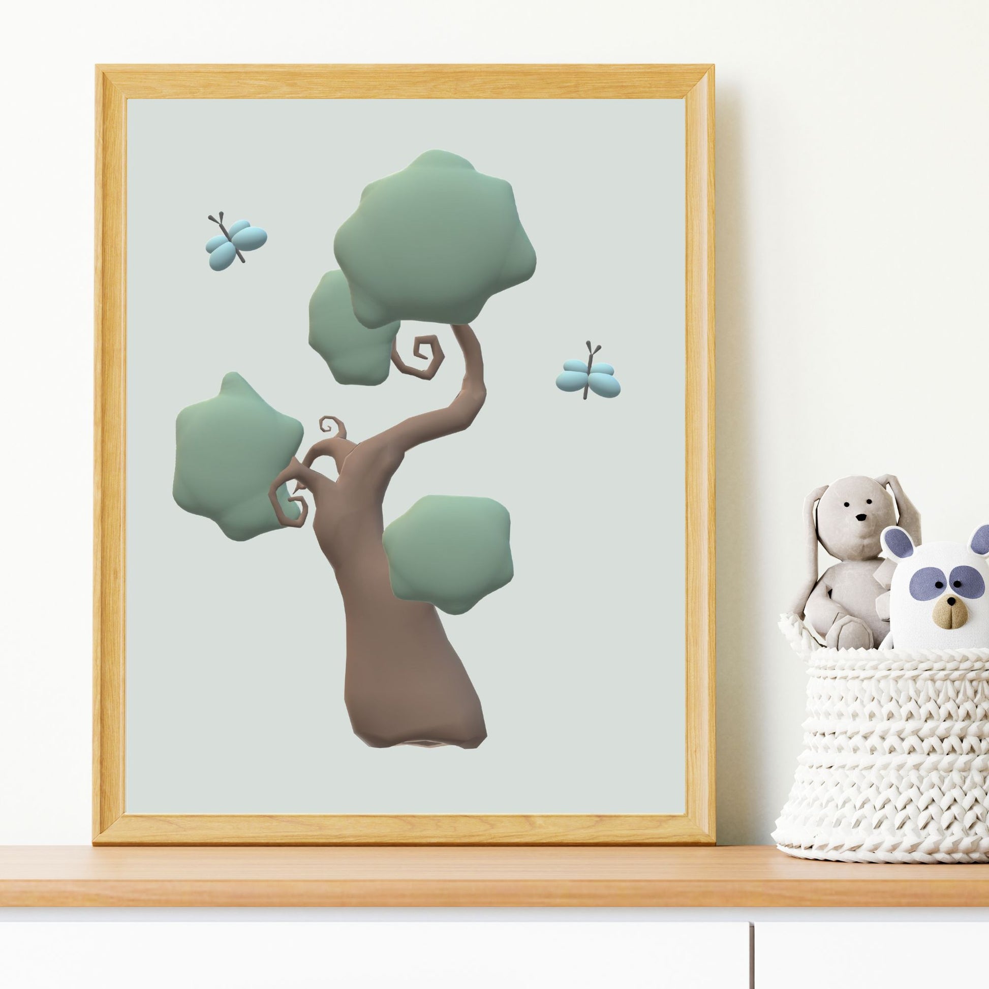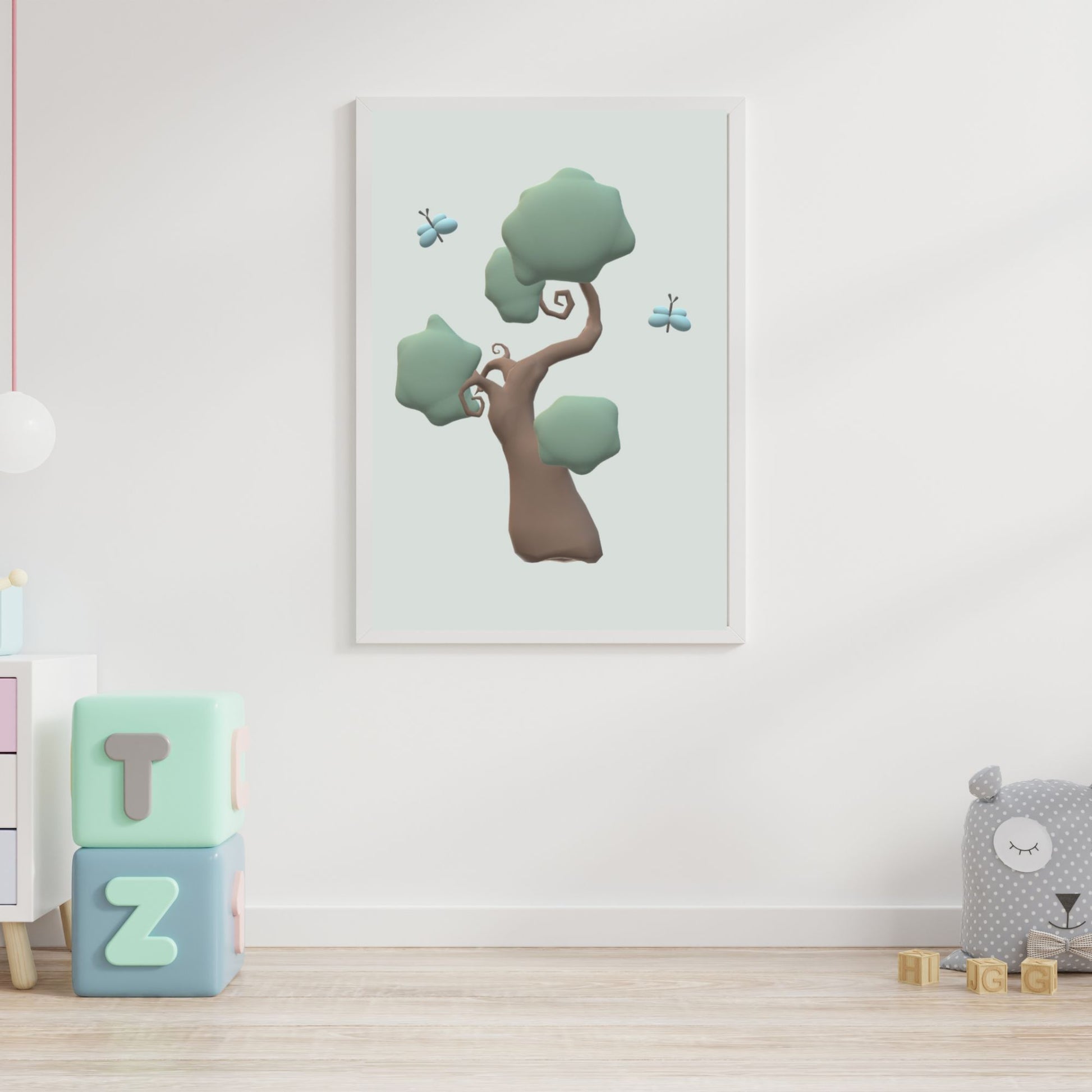 Her har jeg laget et magisk tre, omringet av sommerfugler. Perfekt til barnerommet!