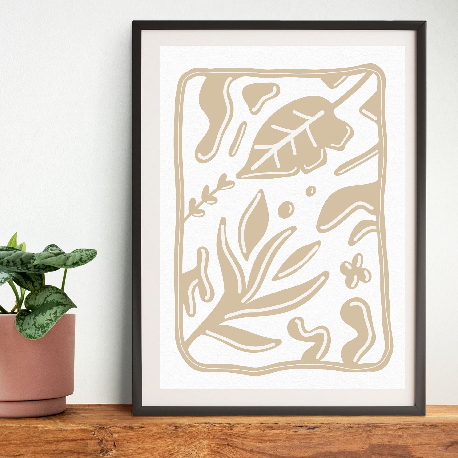 Her har jeg malt abstrakte, eksotiske blader i en deilig beigefarge.