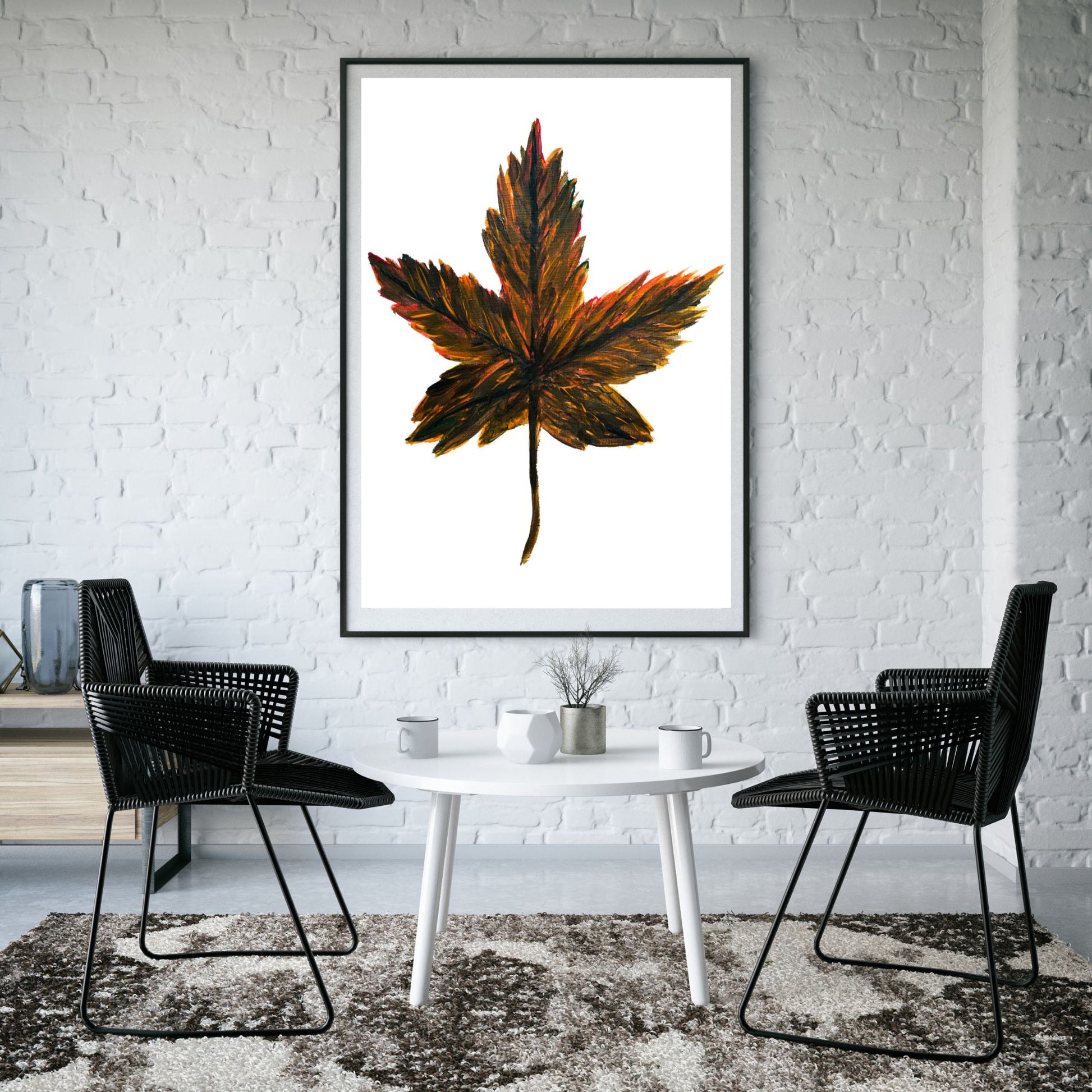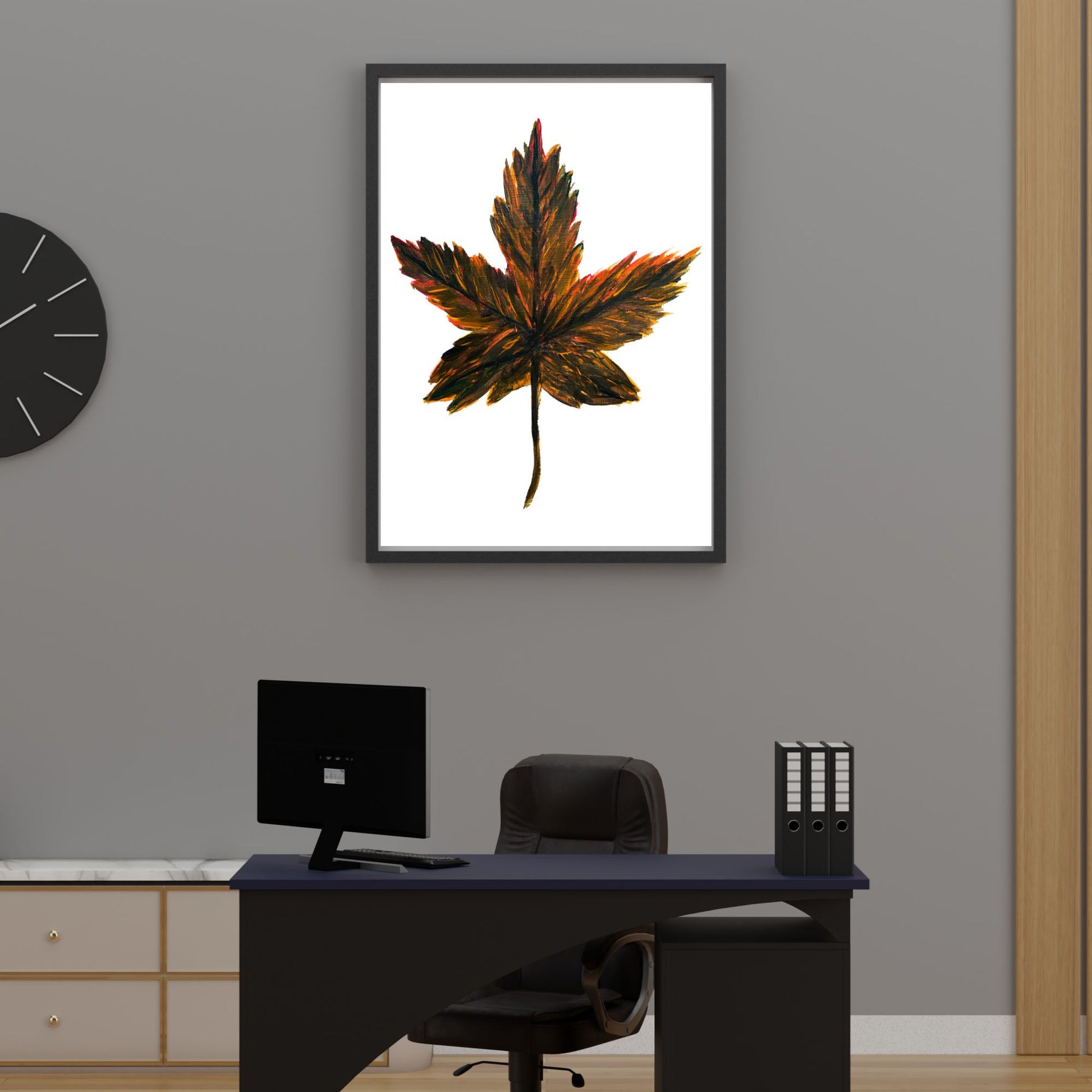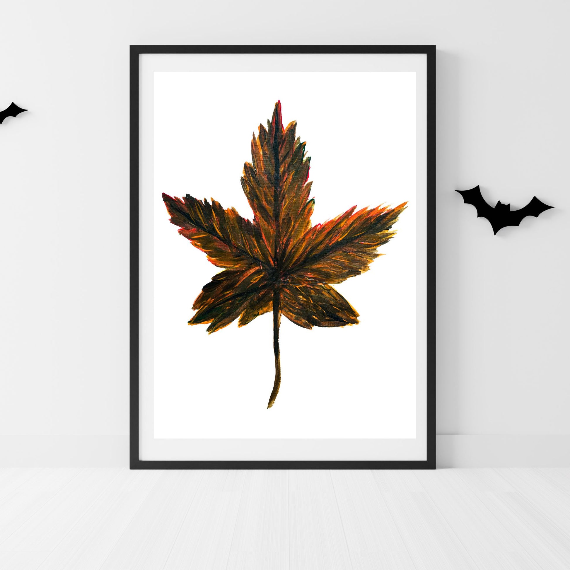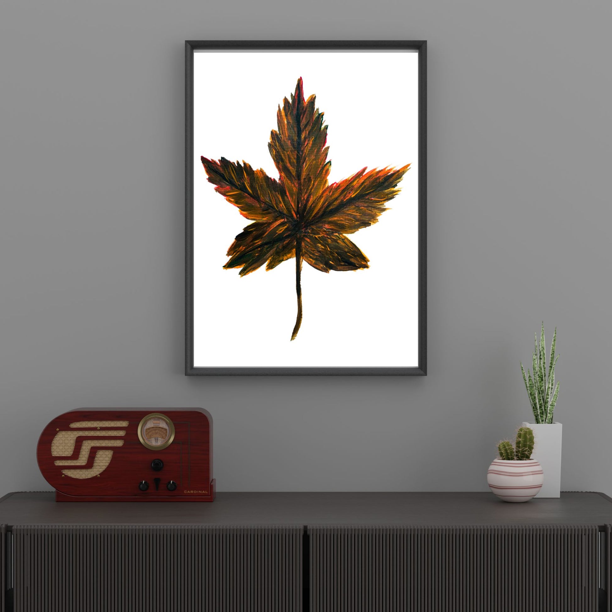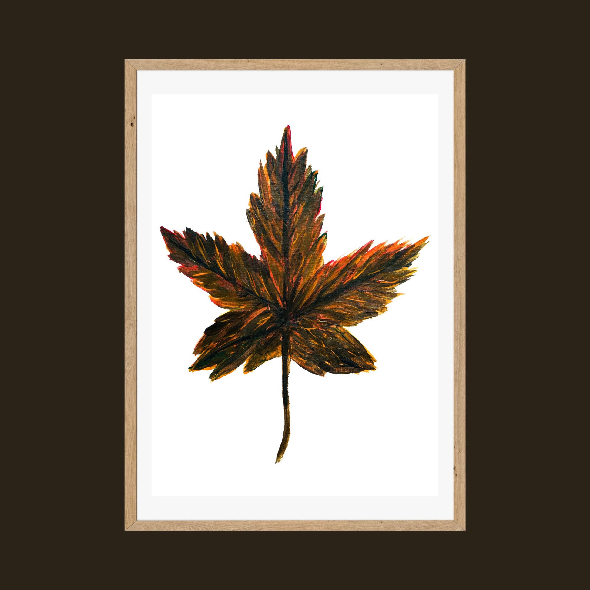 Her har jeg malt et høstblad med akrylmaling, i kobber/bronsetoner. Perfekt for den gode høststemningen i hjemmet!