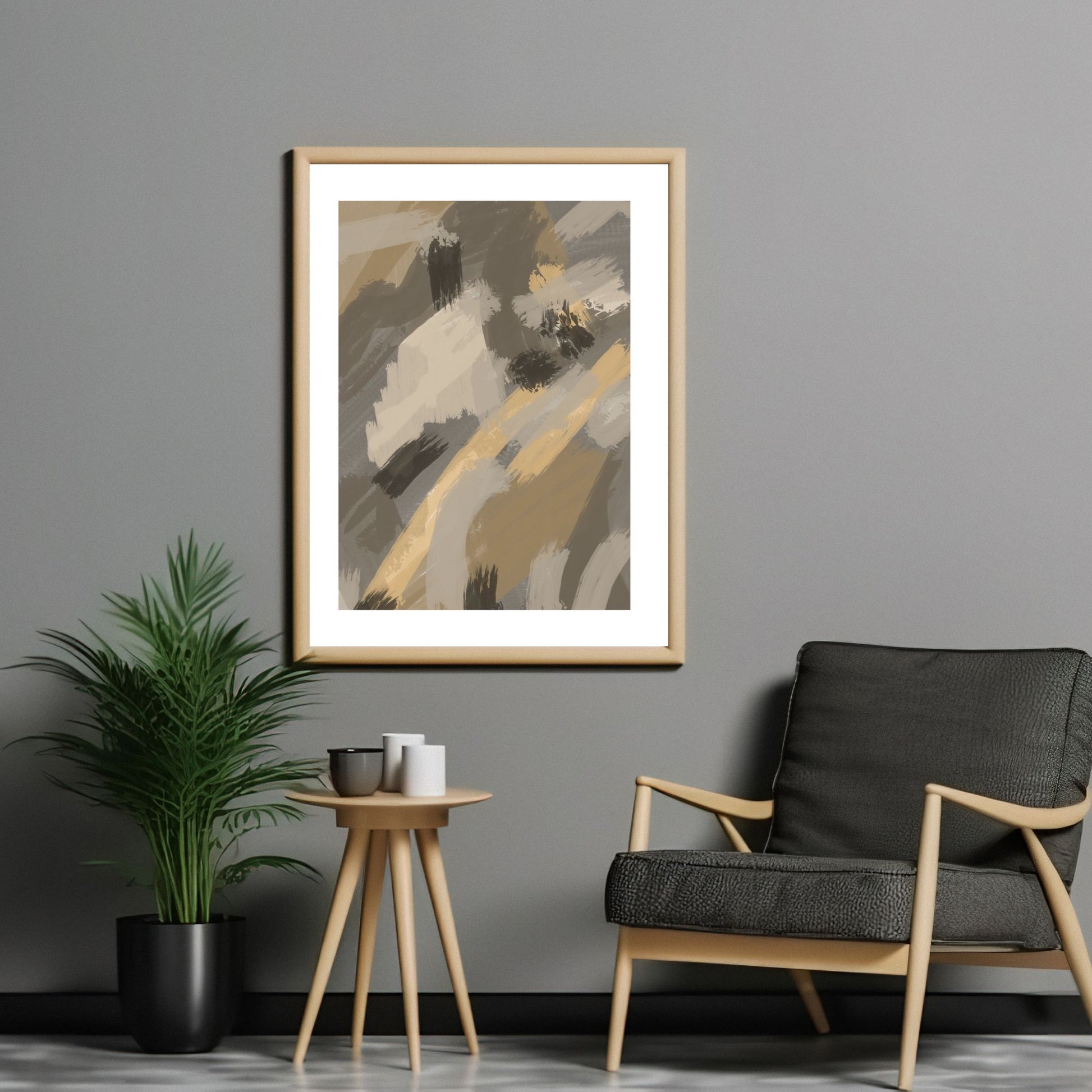 Her har jeg malt en abstrakt plakat i deilige brun- og beigetoner med oljemalinginntrykk.
