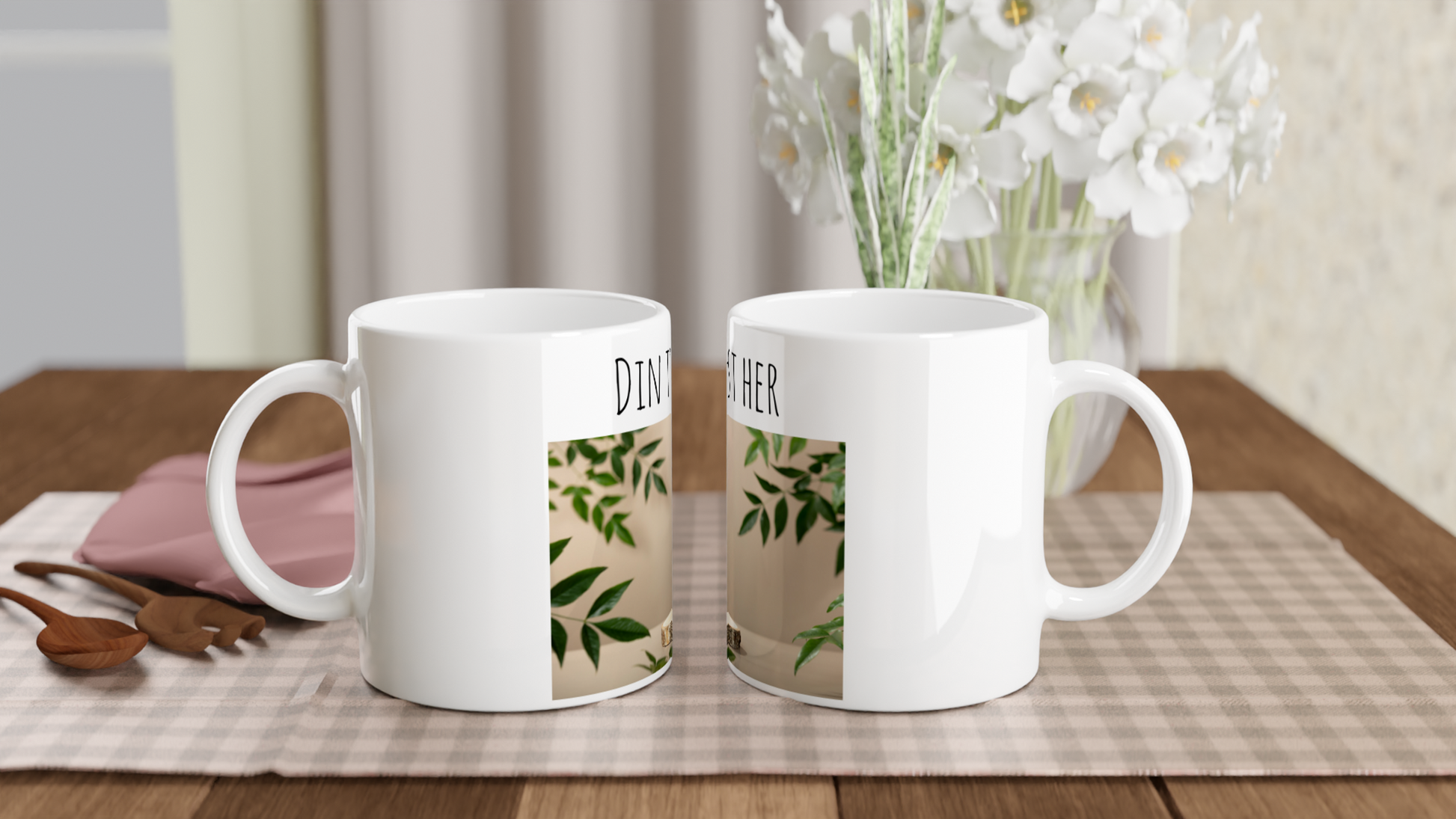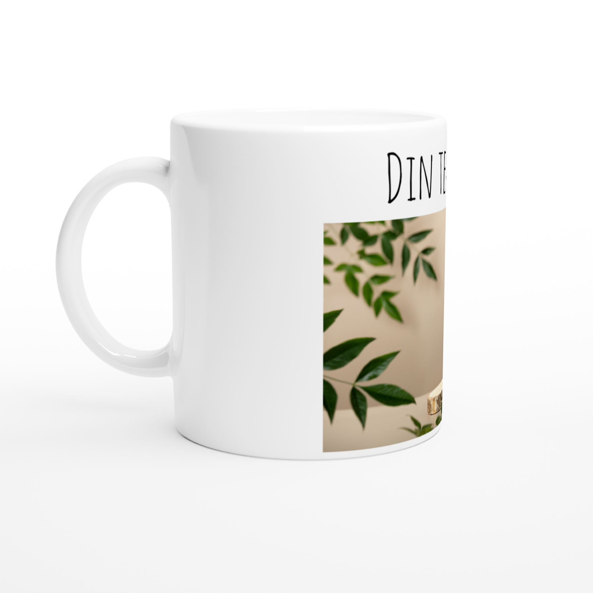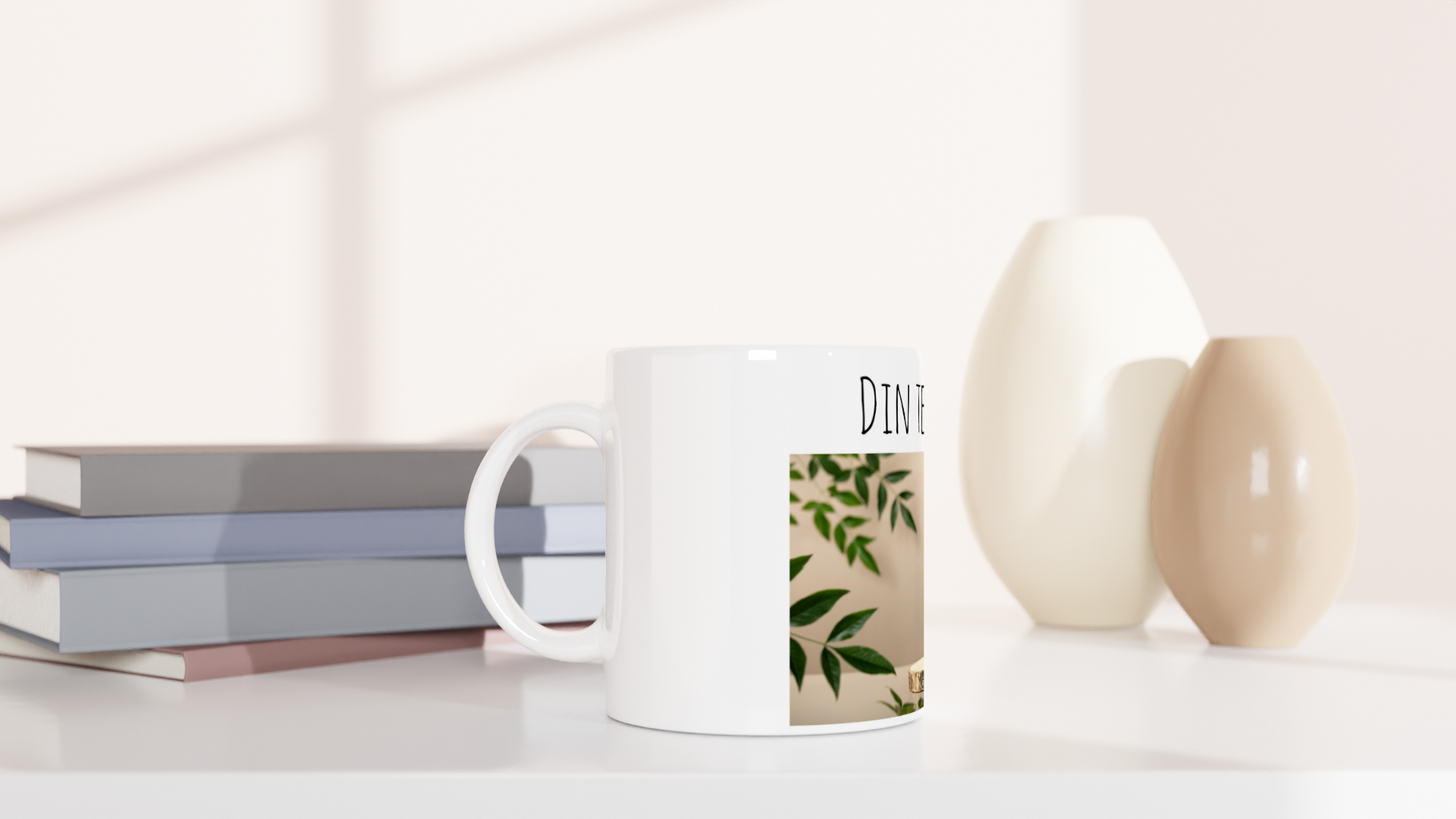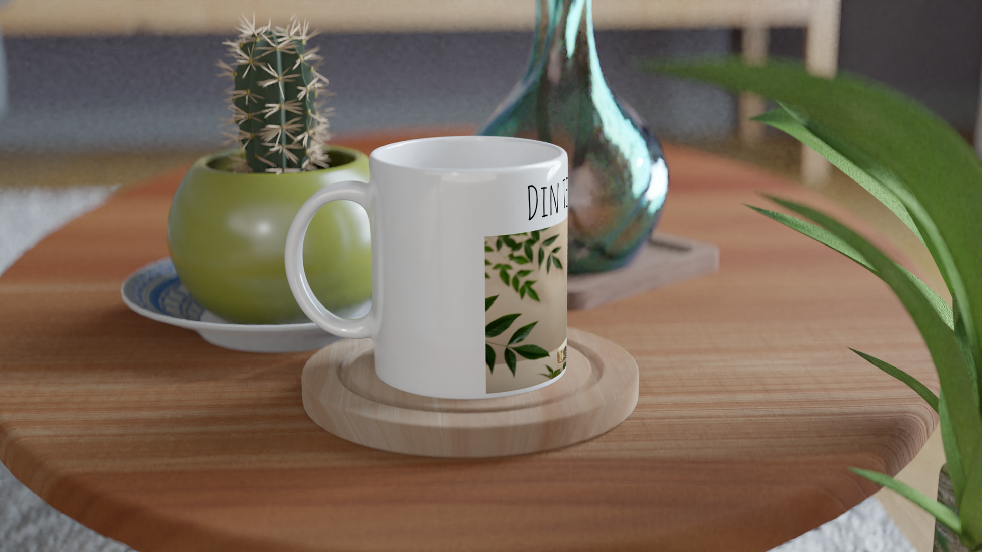 Keramikkruset er blankt og hvitt, og overflaten gir vakre trykk med livlige farger. Trykket bevarer kvaliteten både ved bruk i mikrobølgeovn og oppvaskmaskin.