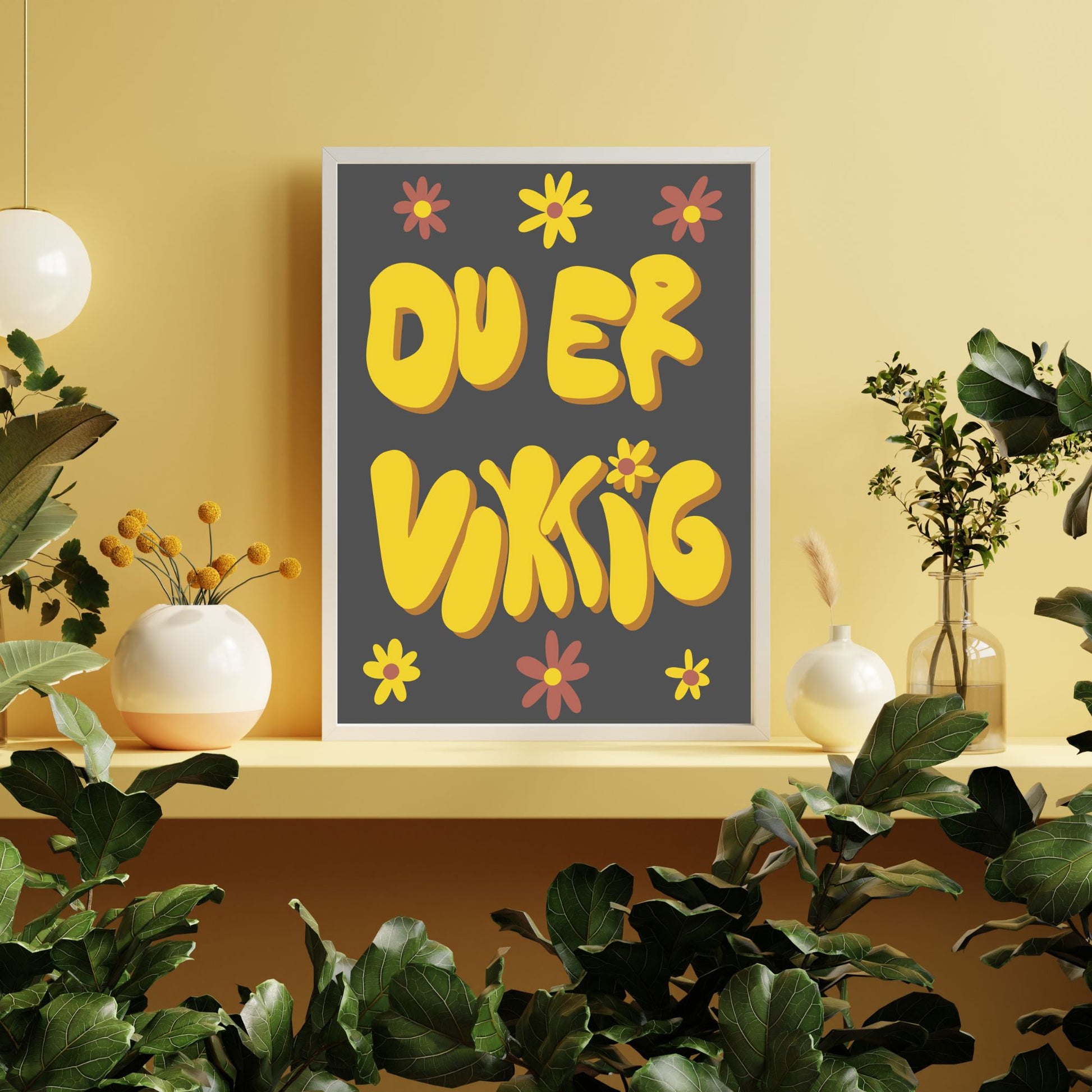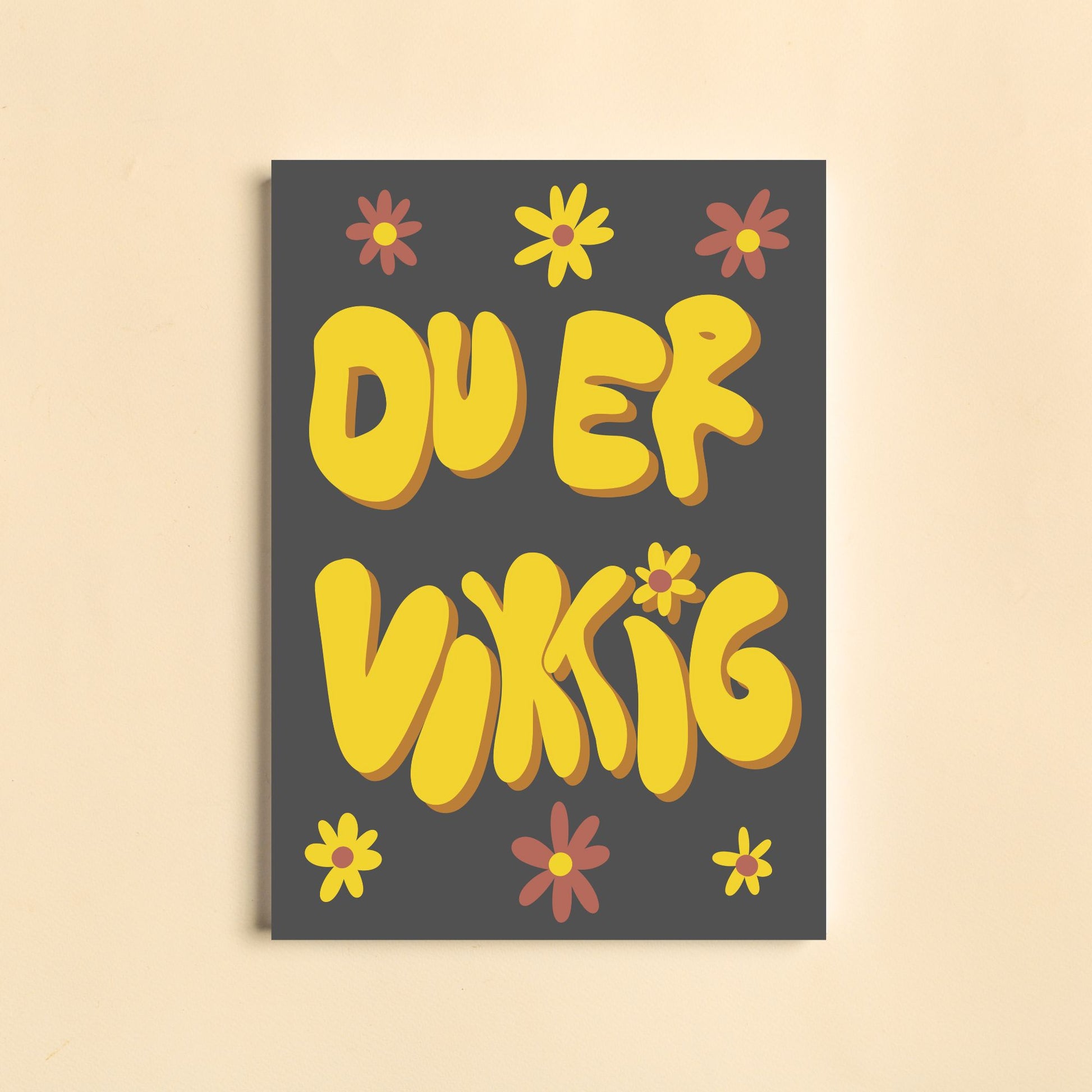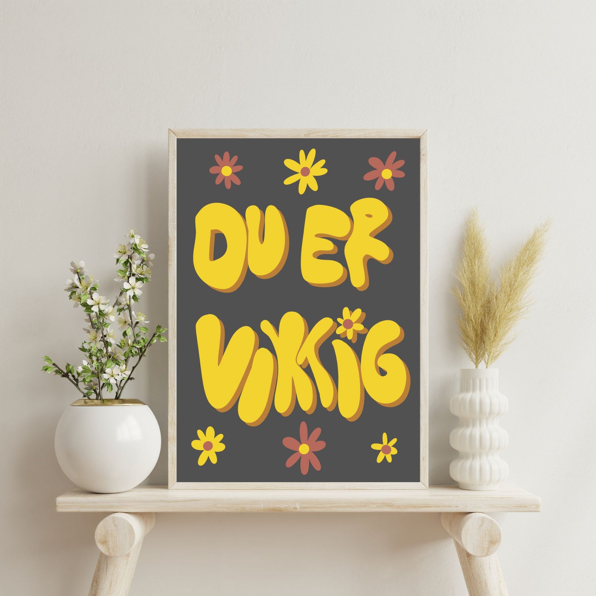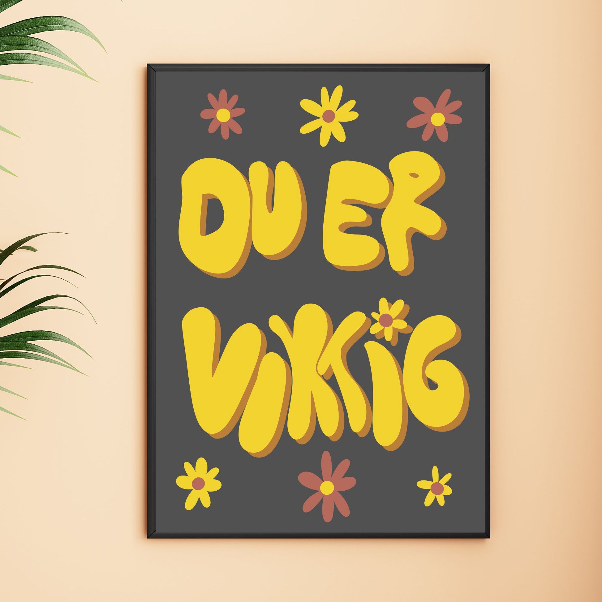 Her har jeg tegnet en plakat med teksten «du er viktig» i deilige retro farger. Sprit opp hjemmet og sinnet med denne flotte plakaten med motiverende ord!