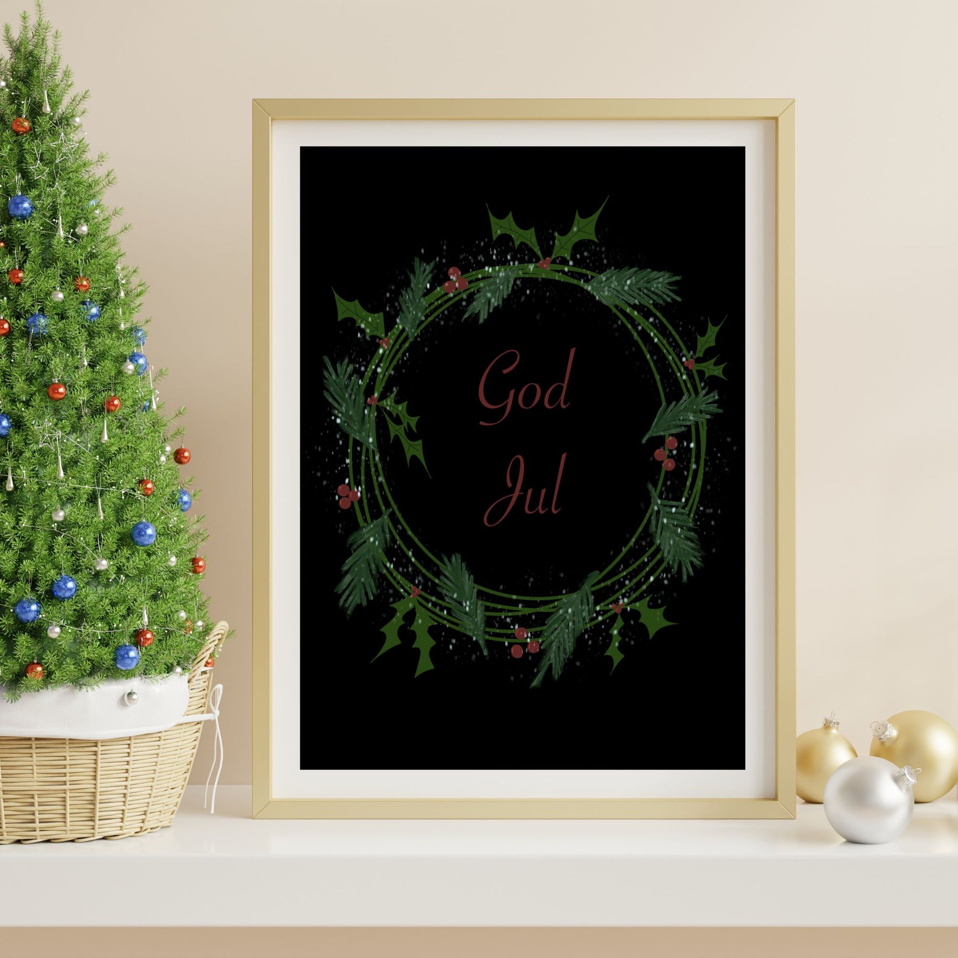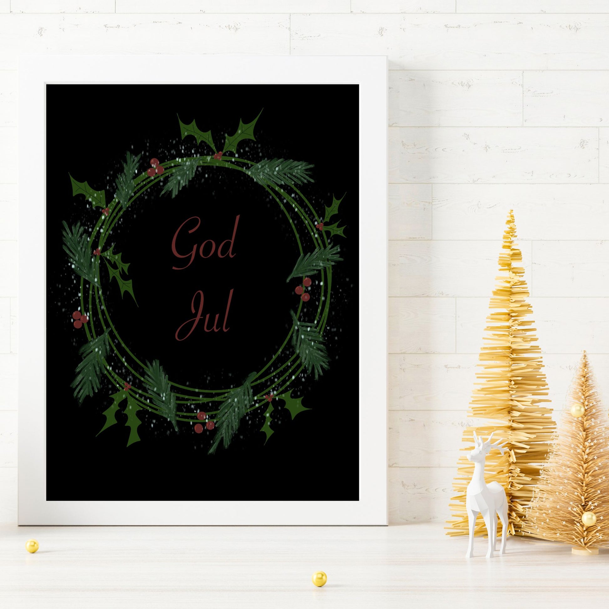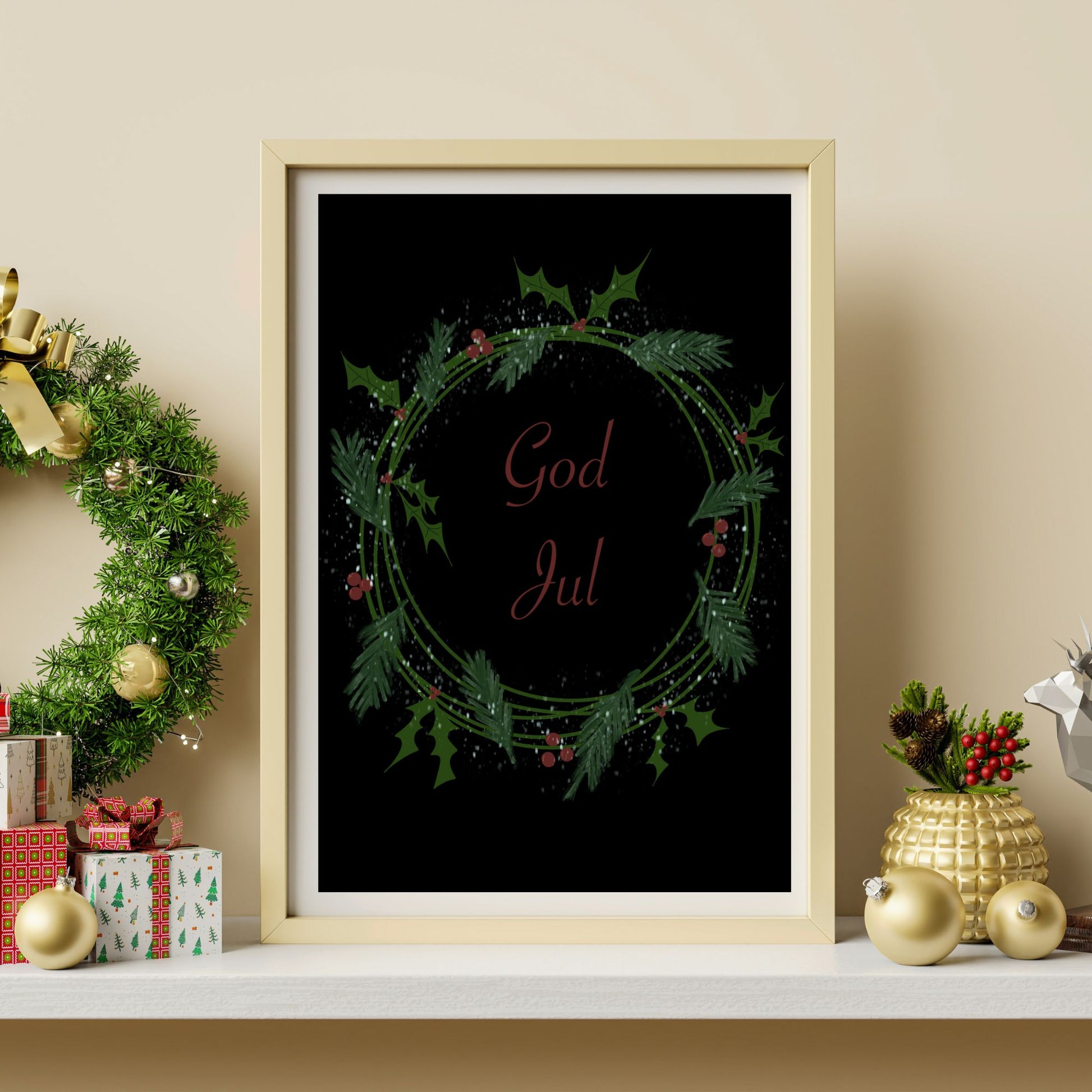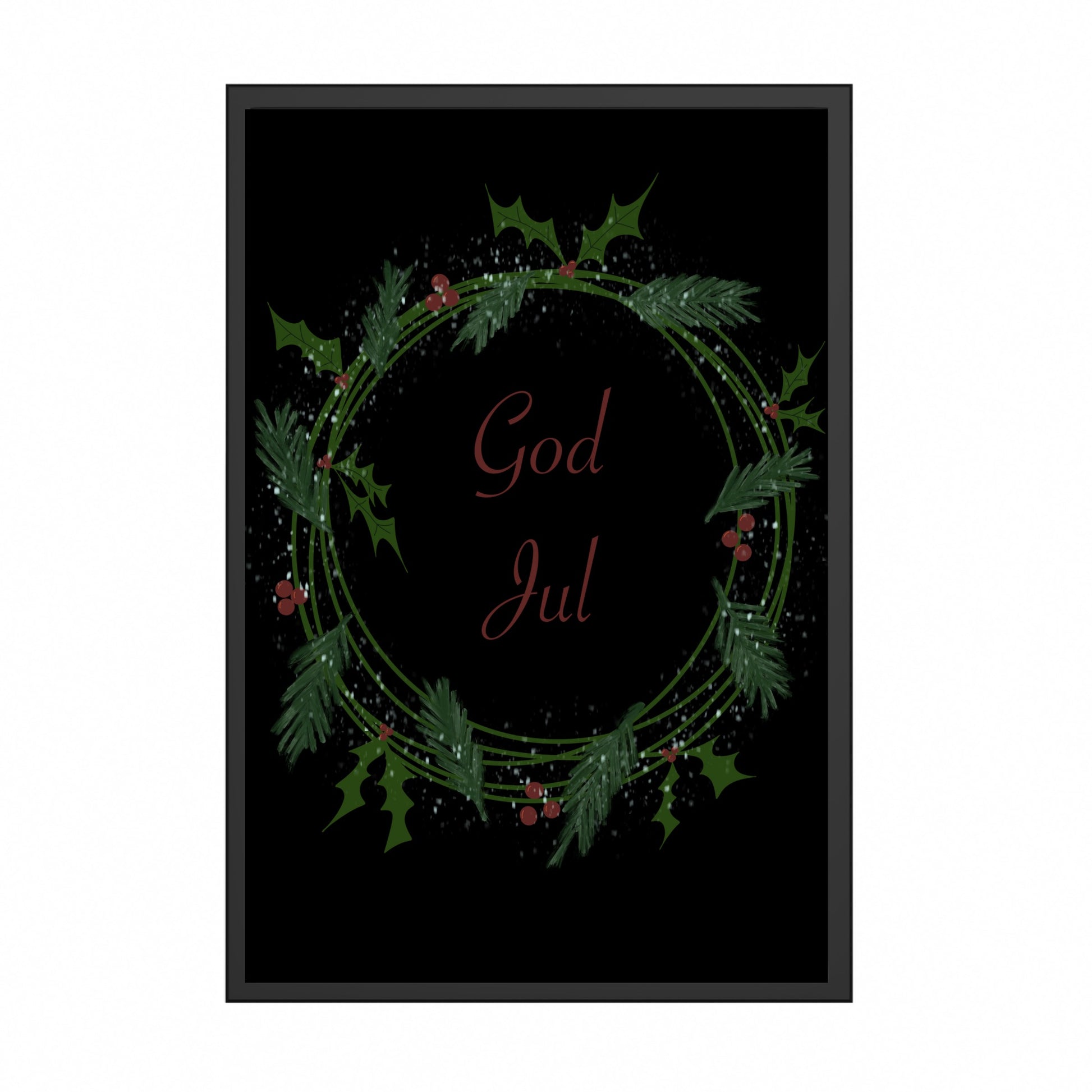 God Jul Krans Sort Plakat