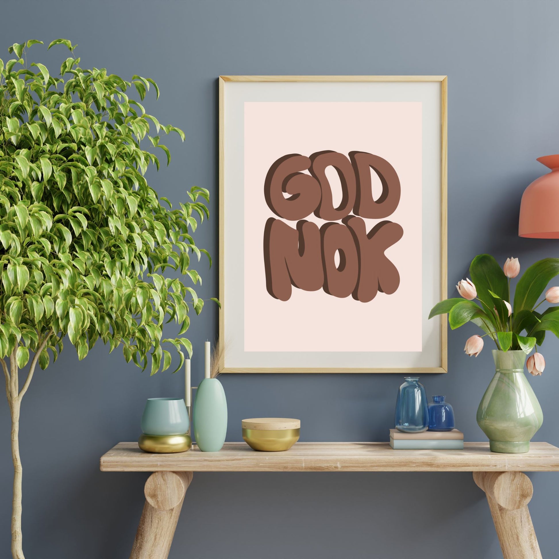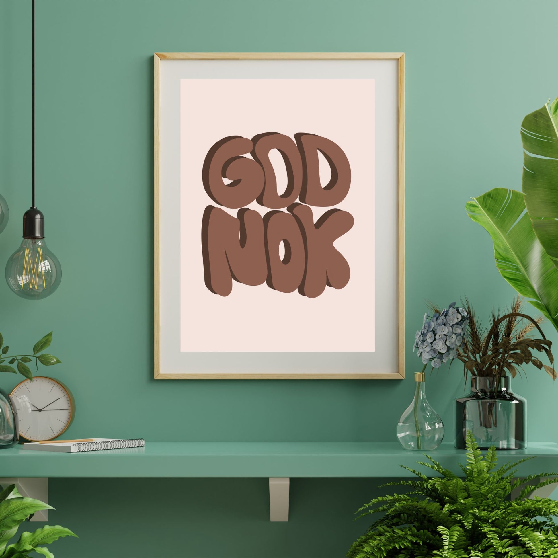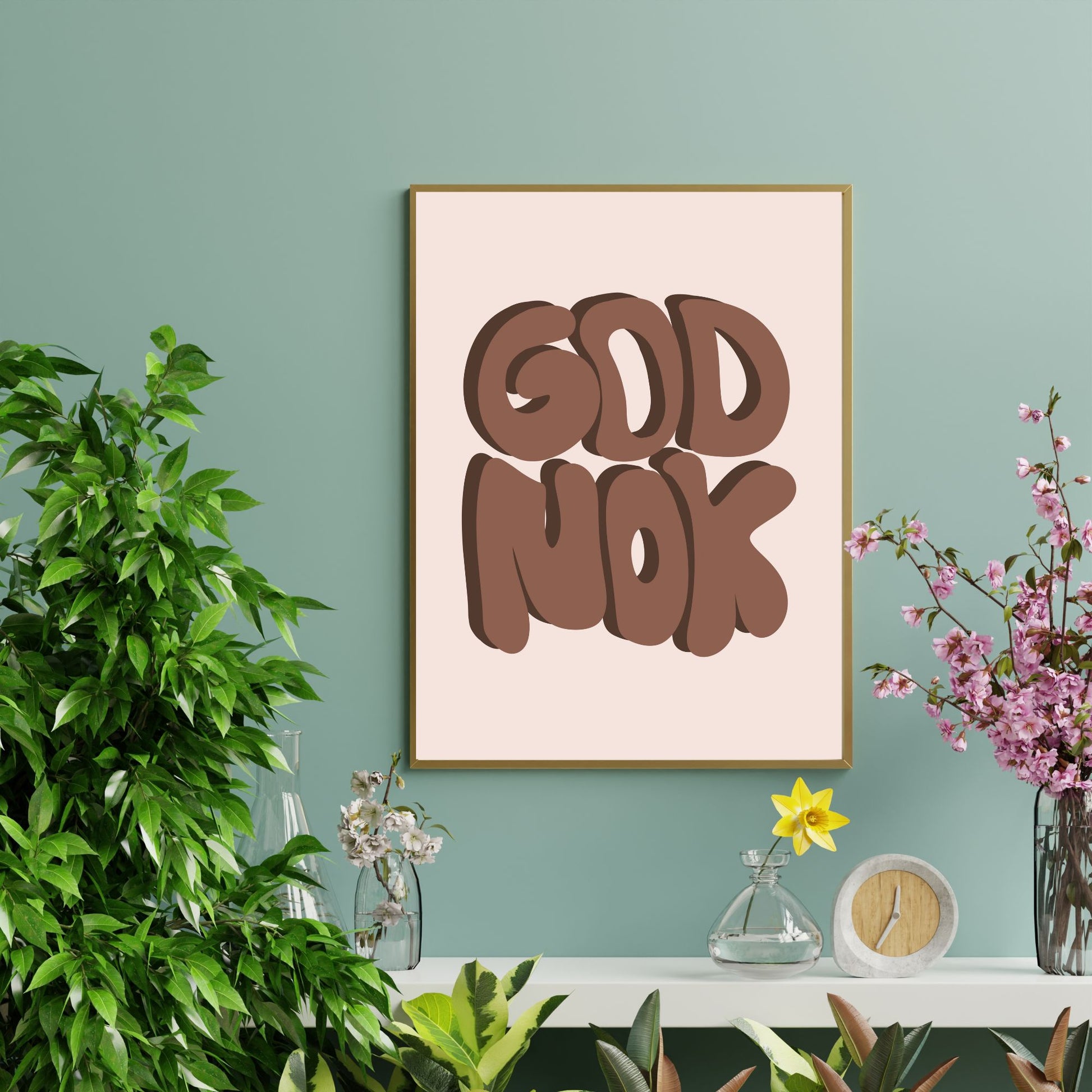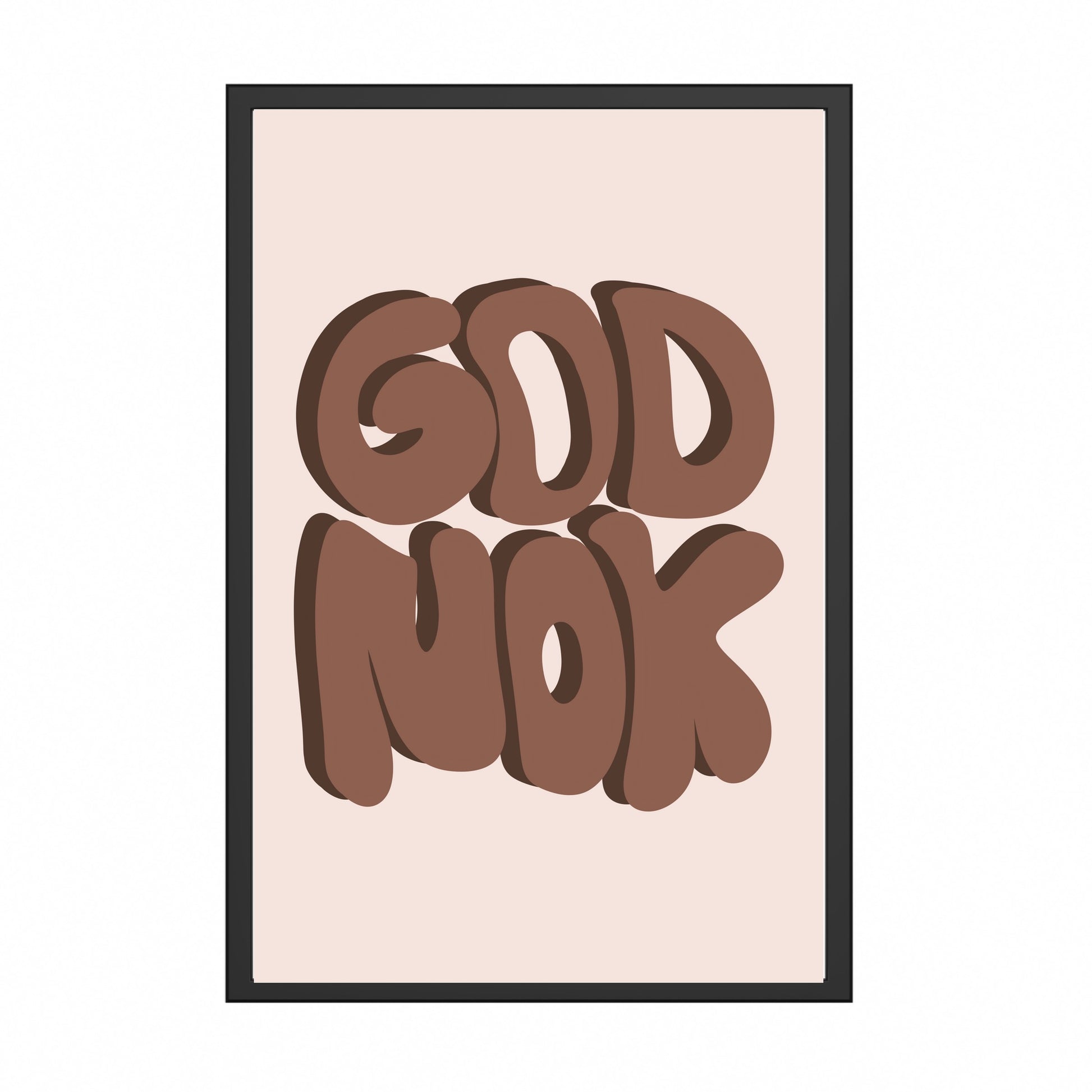 Her har jeg tegnet en plakat med teksten «god nok» i en nydelig brun farge med lys rosa bakgrunn. Sprit opp hjemmet og sinnet med denne flotte plakaten med motiverende ord!