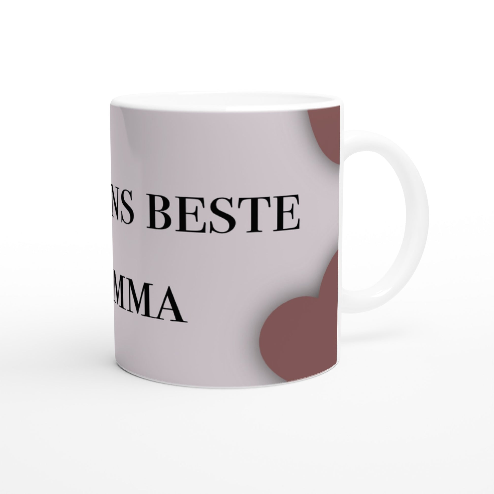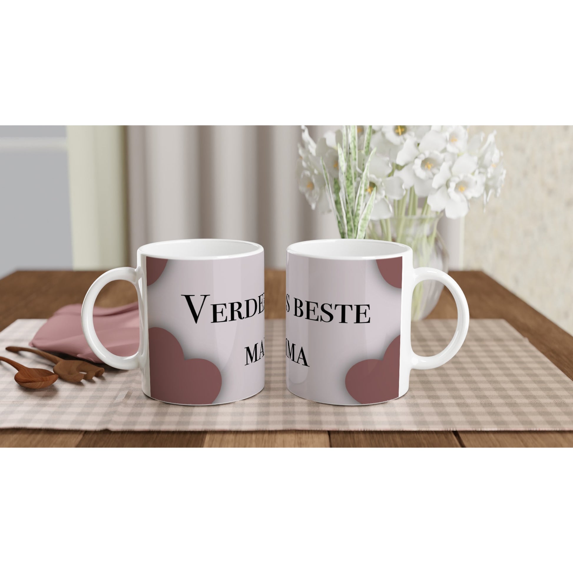 Har du en mamma du ønsker å gjøre ekstra stas på? Dette flotte keramiske lattekruset passer perfekt til alle anledninger. Enten det er til morgenkaffen, en varm sjokolade eller annen varm drikke. Kruset er blankt og hvitt, og overflaten gir vakre trykk med livlige farger. Trykket bevarer kvaliteten både ved bruk i mikrobølgeovn og oppvaskmaskin.