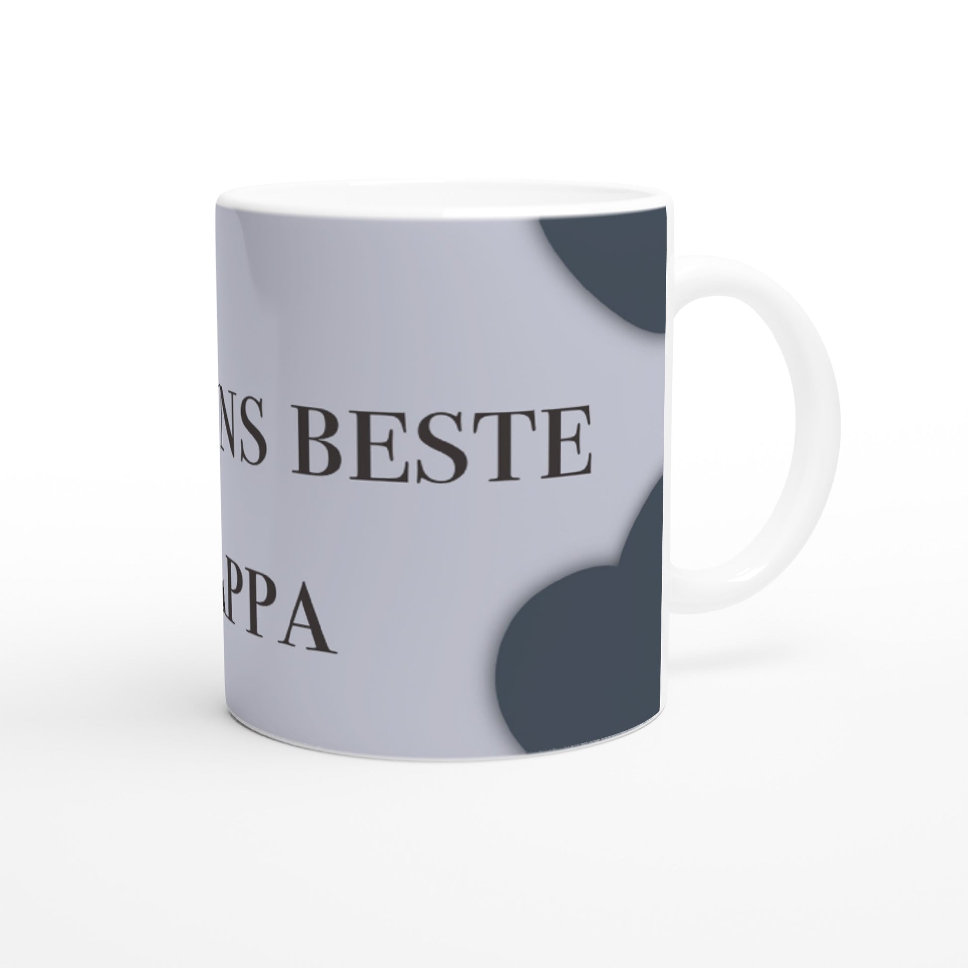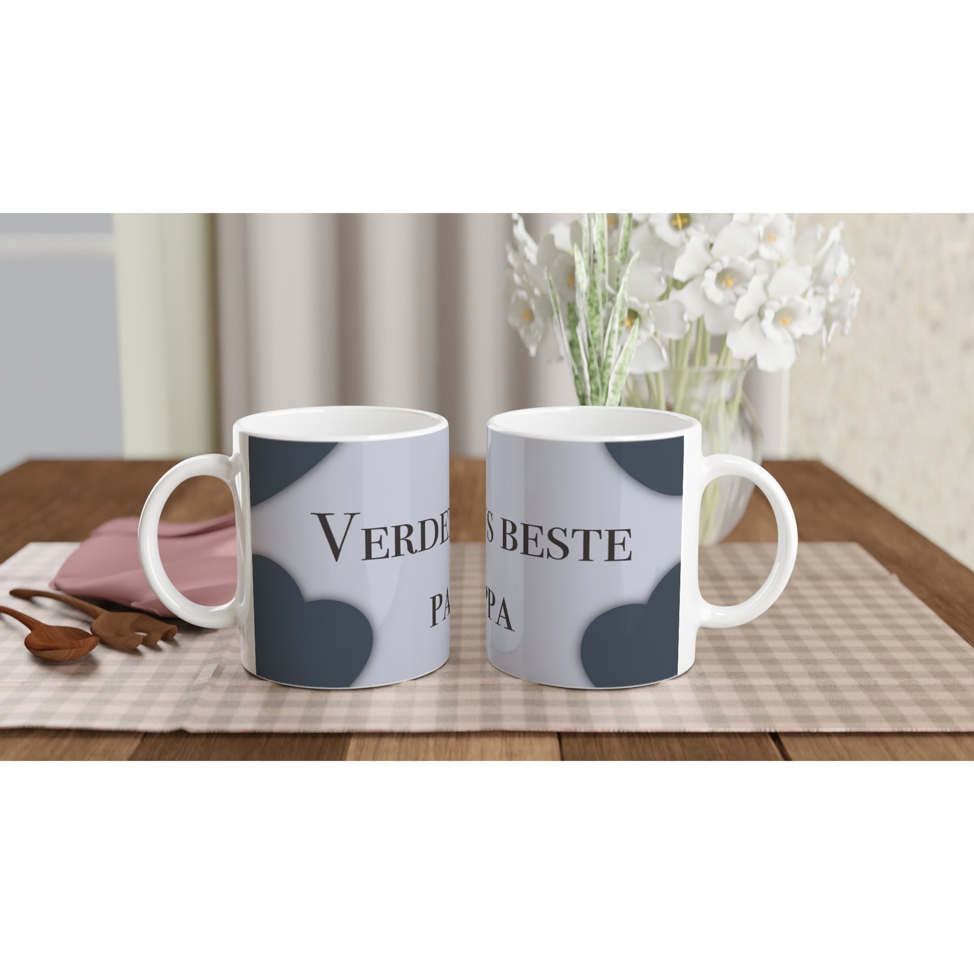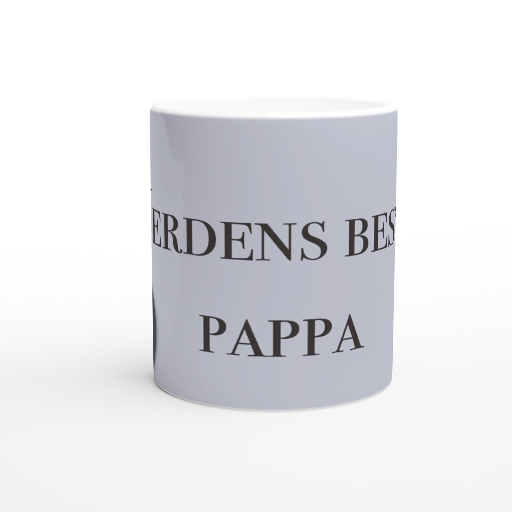 Har du en pappa du ønsker å gjøre ekstra stas på? Dette flotte keramiske lattekruset passer perfekt til alle anledninger. Enten det er til morgenkaffen, en varm sjokolade eller annen varm drikke. Kruset er blankt og hvitt, og overflaten gir vakre trykk med livlige farger. Trykket bevarer kvaliteten både ved bruk i mikrobølgeovn og oppvaskmaskin.
