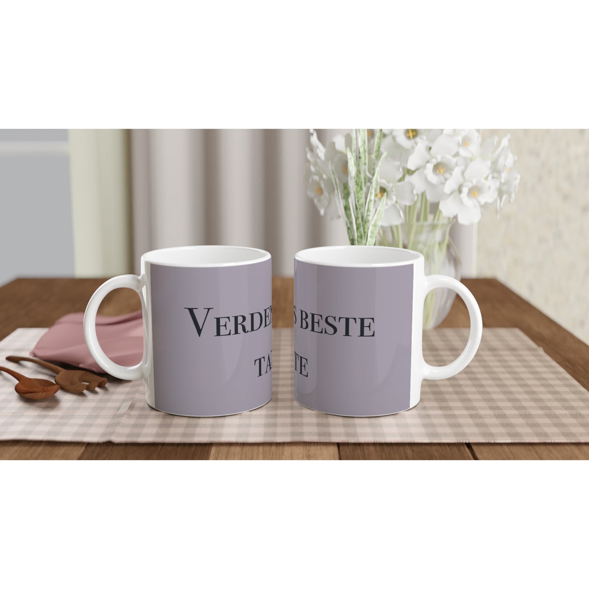 Har du en tante du ønsker å gjøre ekstra stas på? Dette flotte keramiske lattekruset passer perfekt til alle anledninger. Enten det er til morgenkaffen, en varm sjokolade eller annen varm drikke. Kruset er blankt og hvitt, og overflaten gir vakre trykk med livlige farger. Trykket bevarer kvaliteten både ved bruk i mikrobølgeovn og oppvaskmaskin.