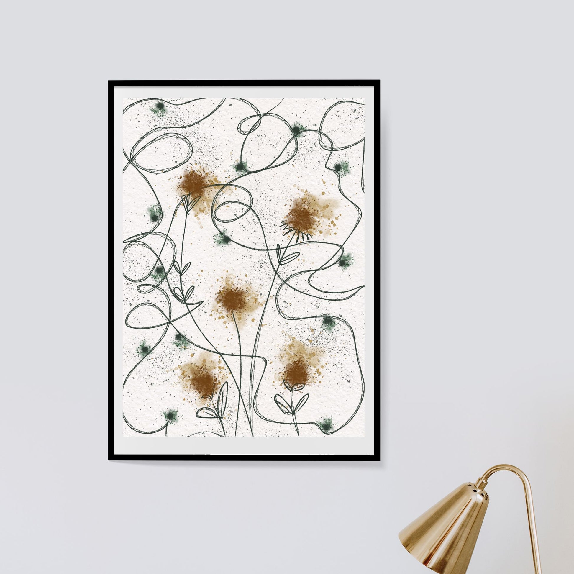 Her har jeg malt en krusedullplakat i deilige kopper- og grønntoner.