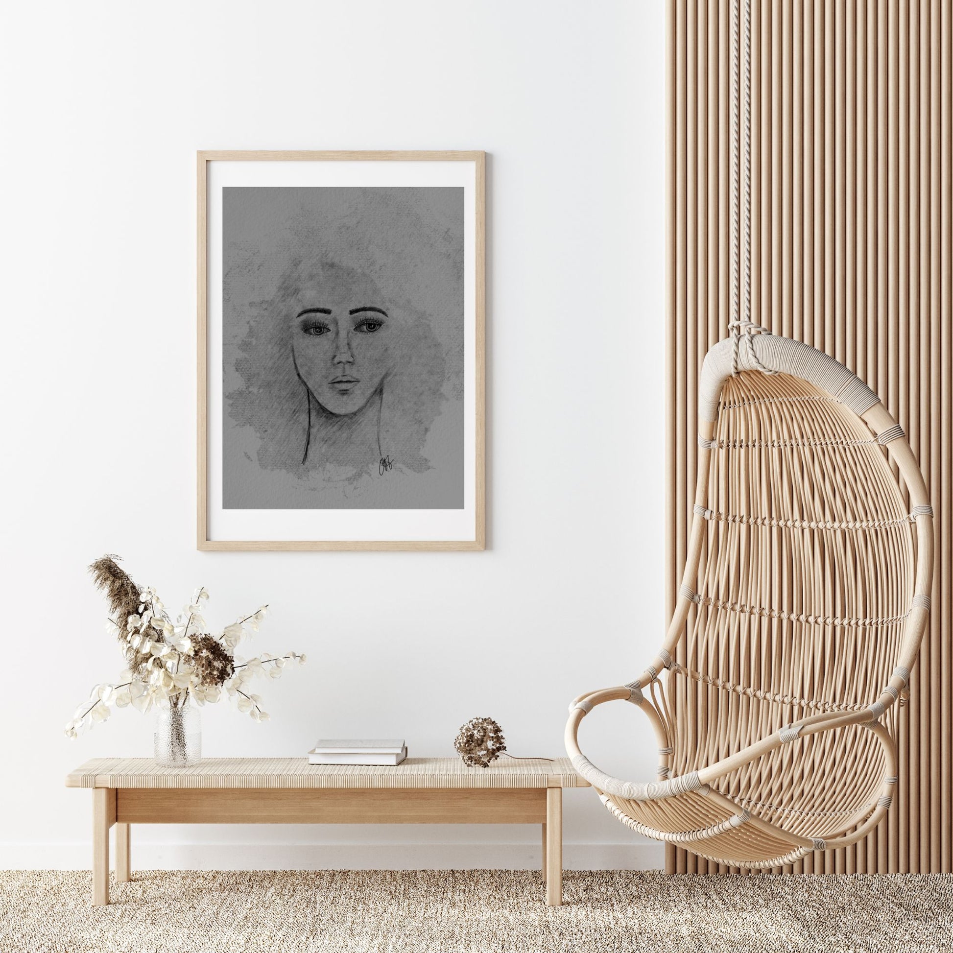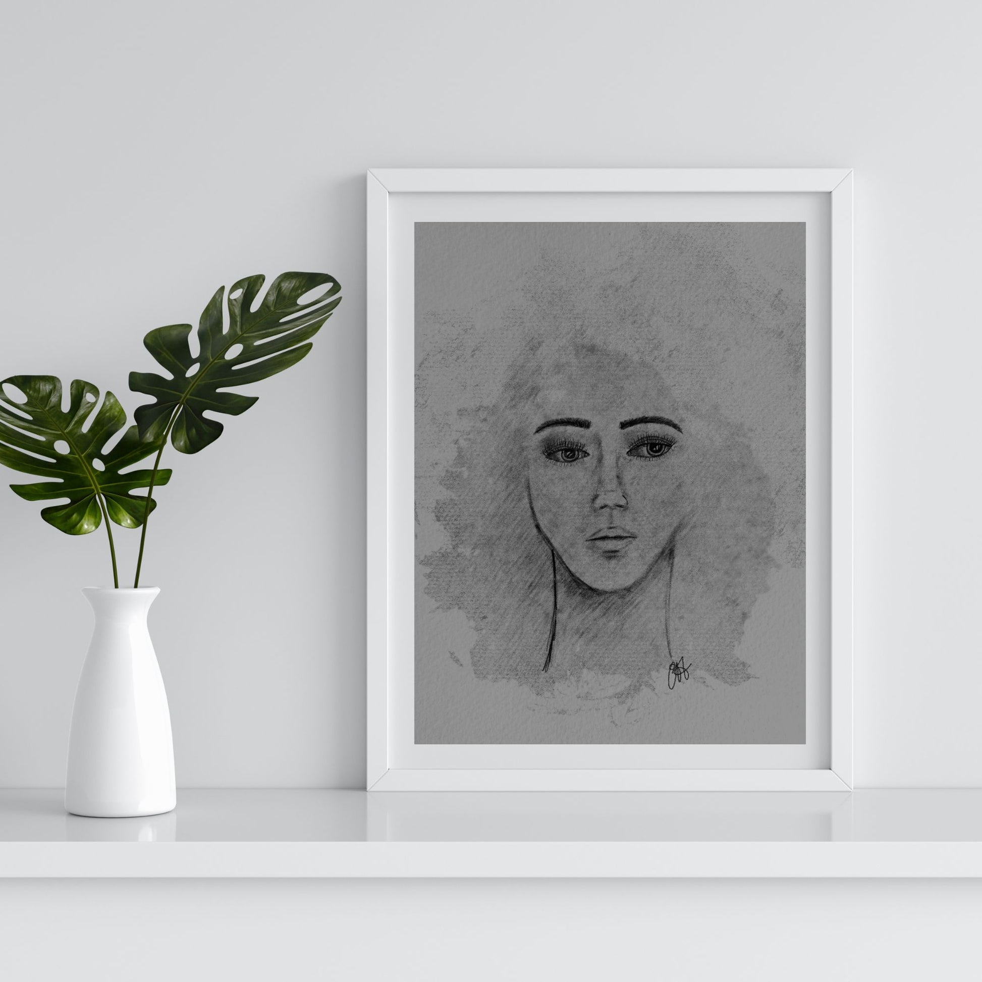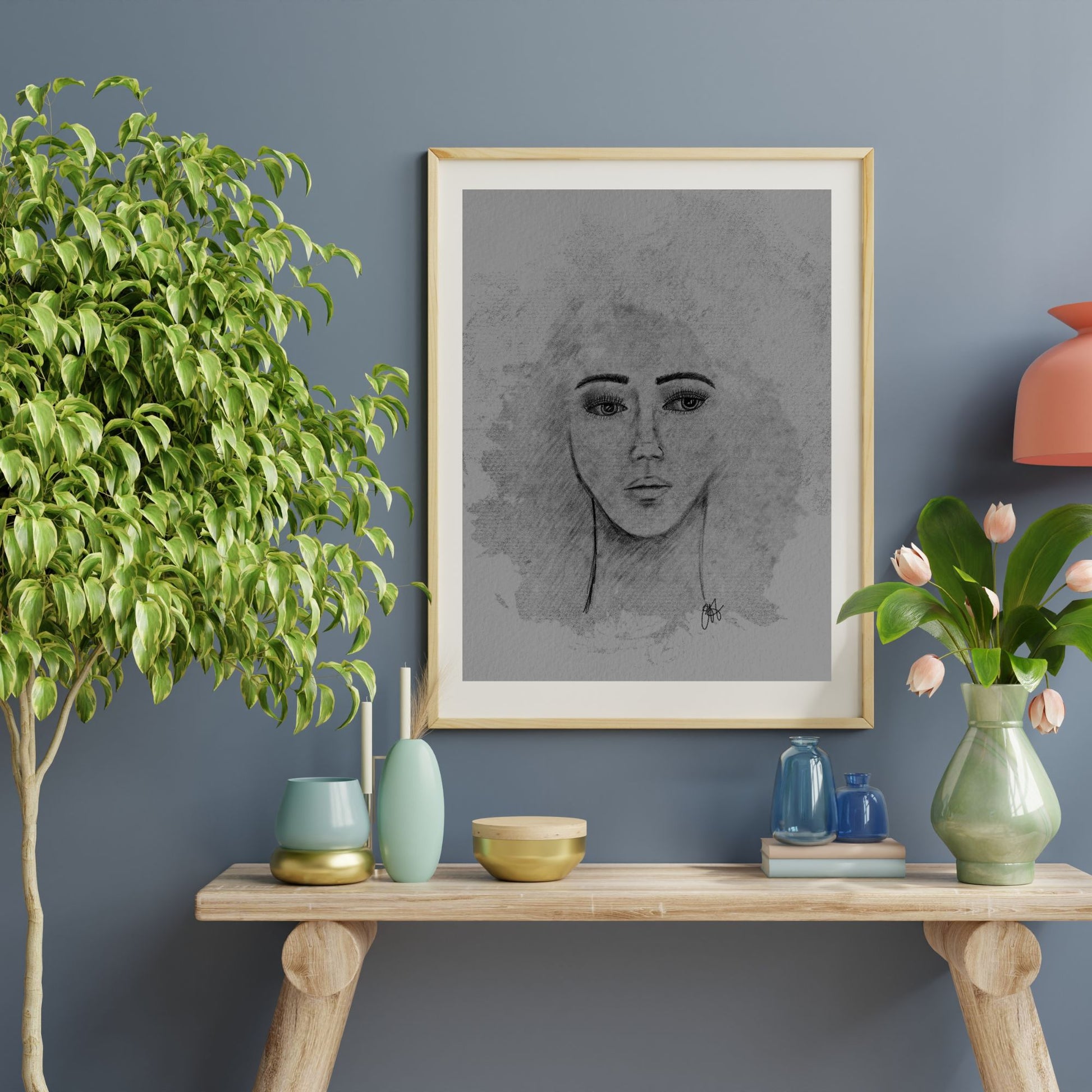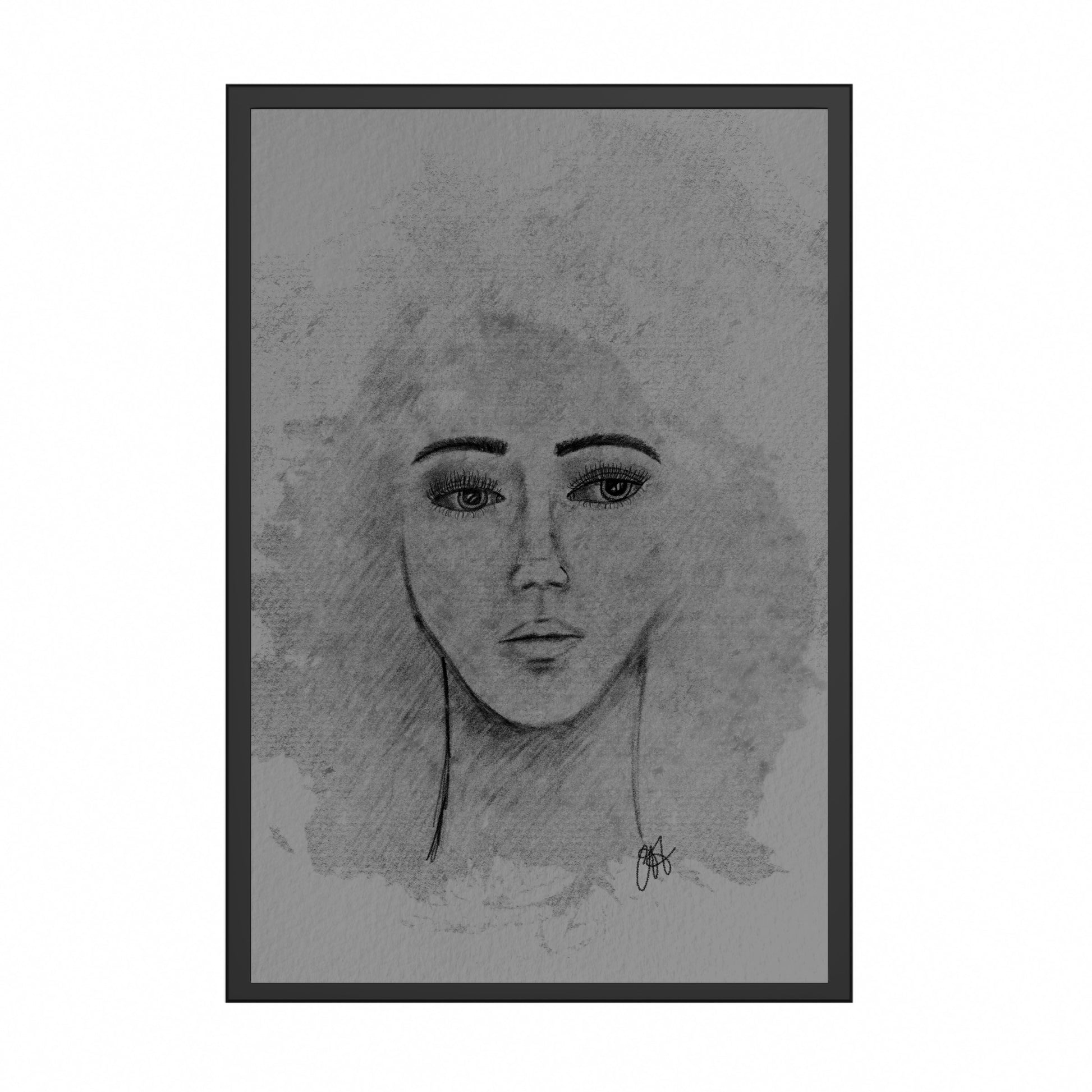 Her har jeg tegnet en kvinne med et tenkende uttrykk i ansiktet.