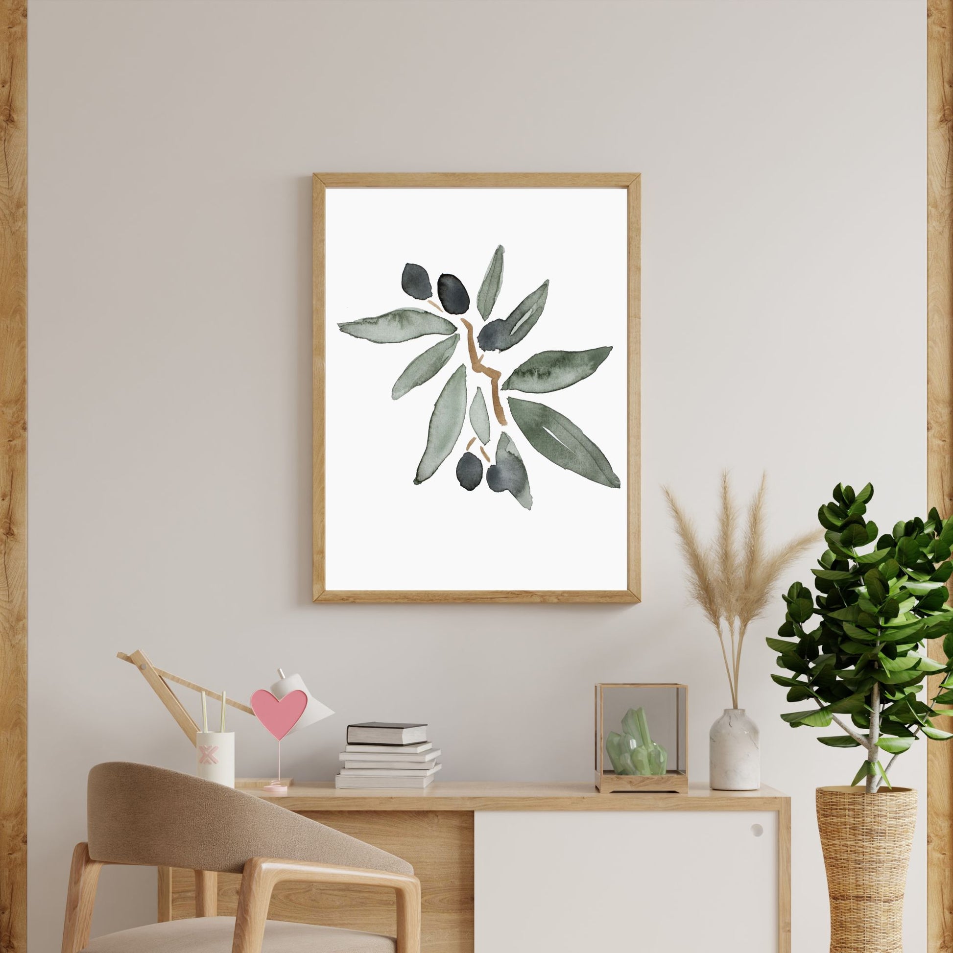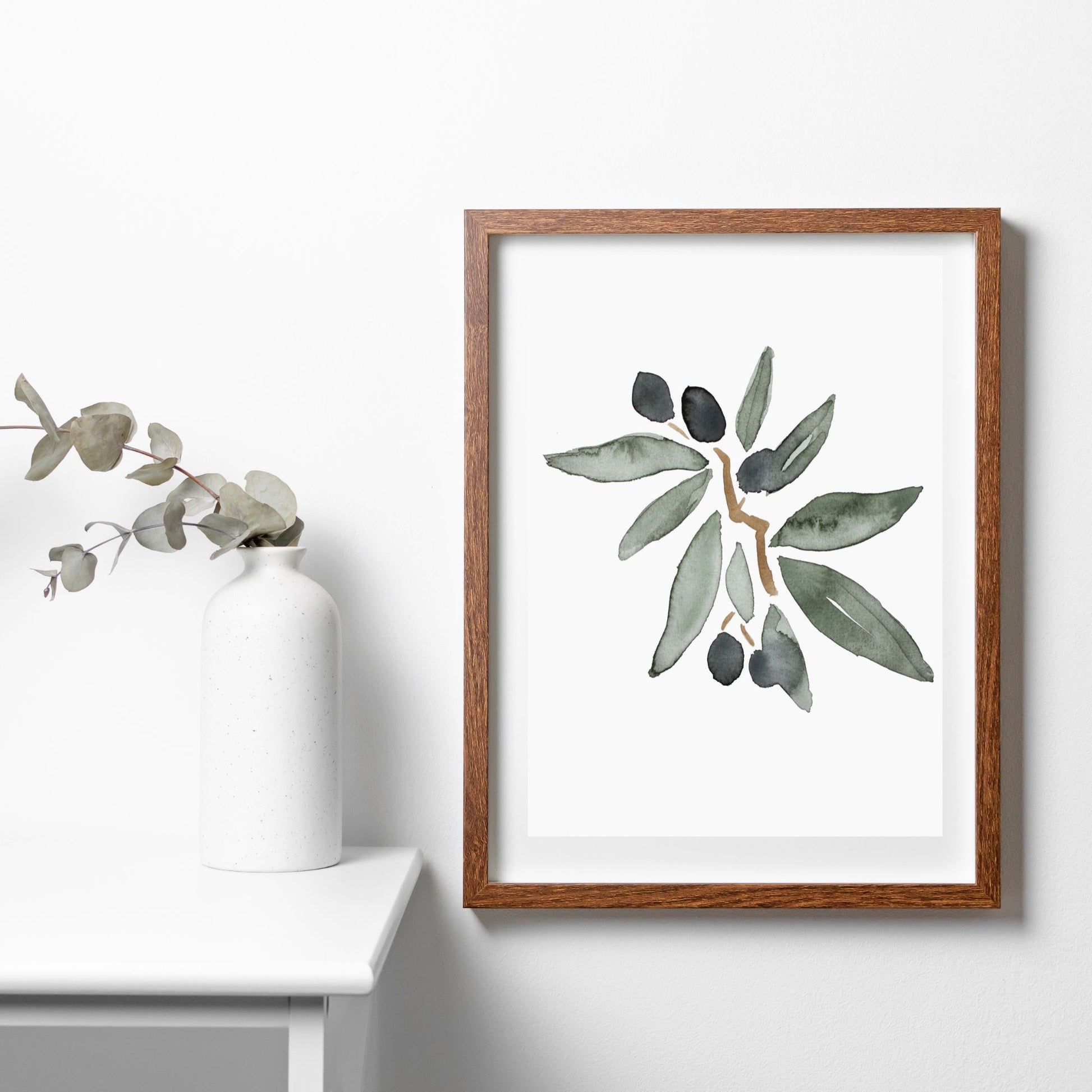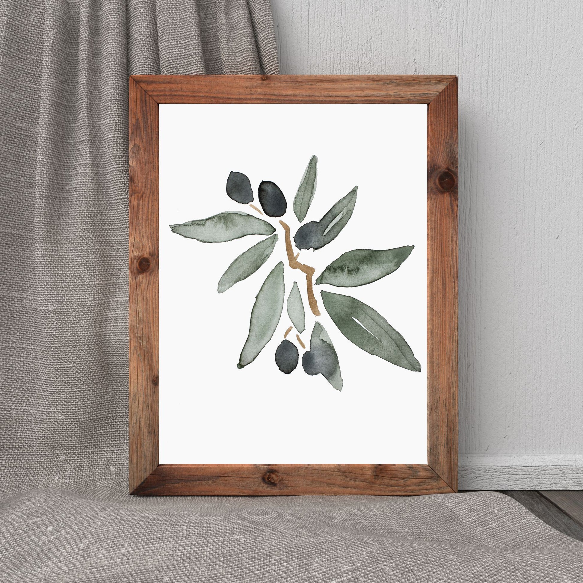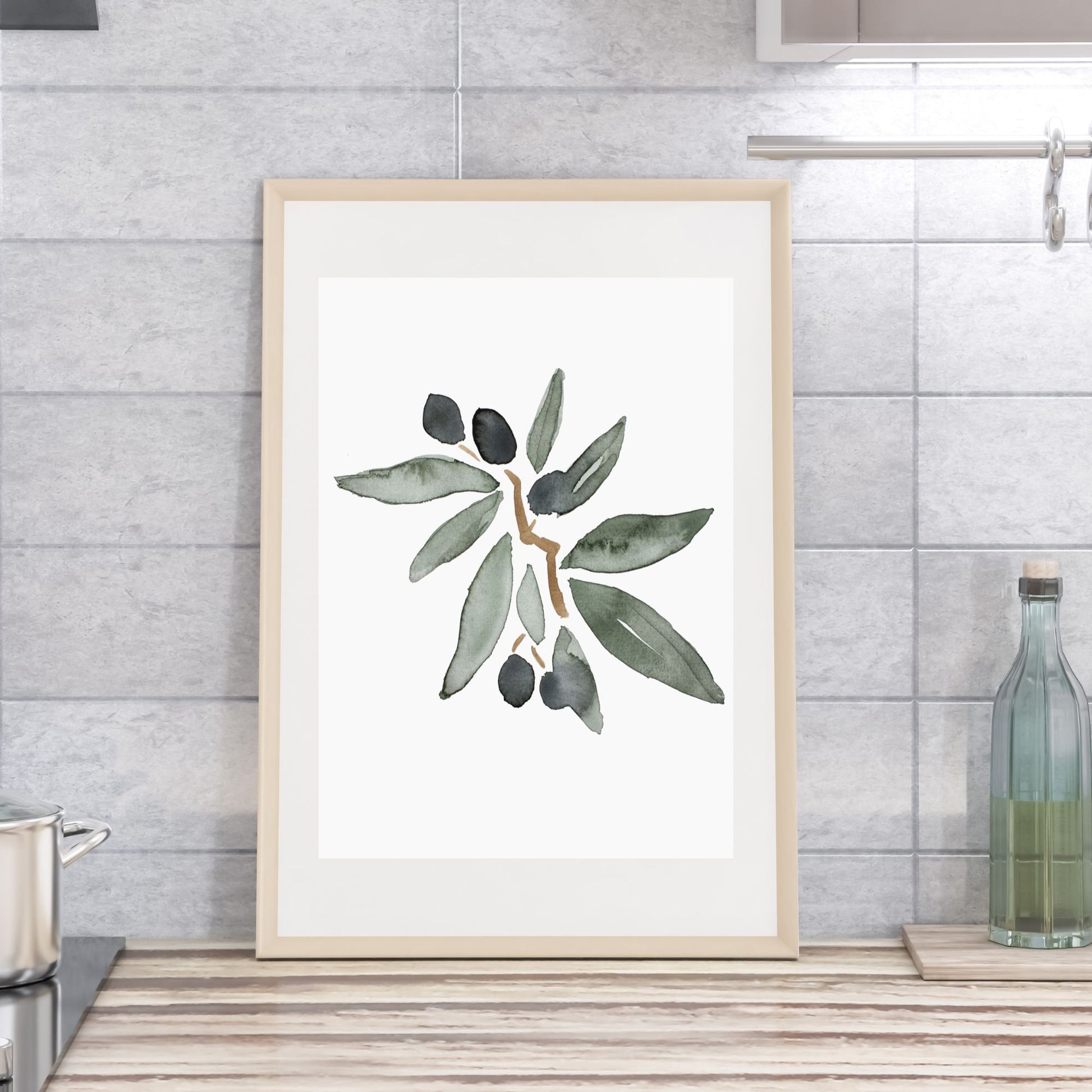 Her har jeg malt en liten olivenkvist i nydelige grønn- og blåtoner.