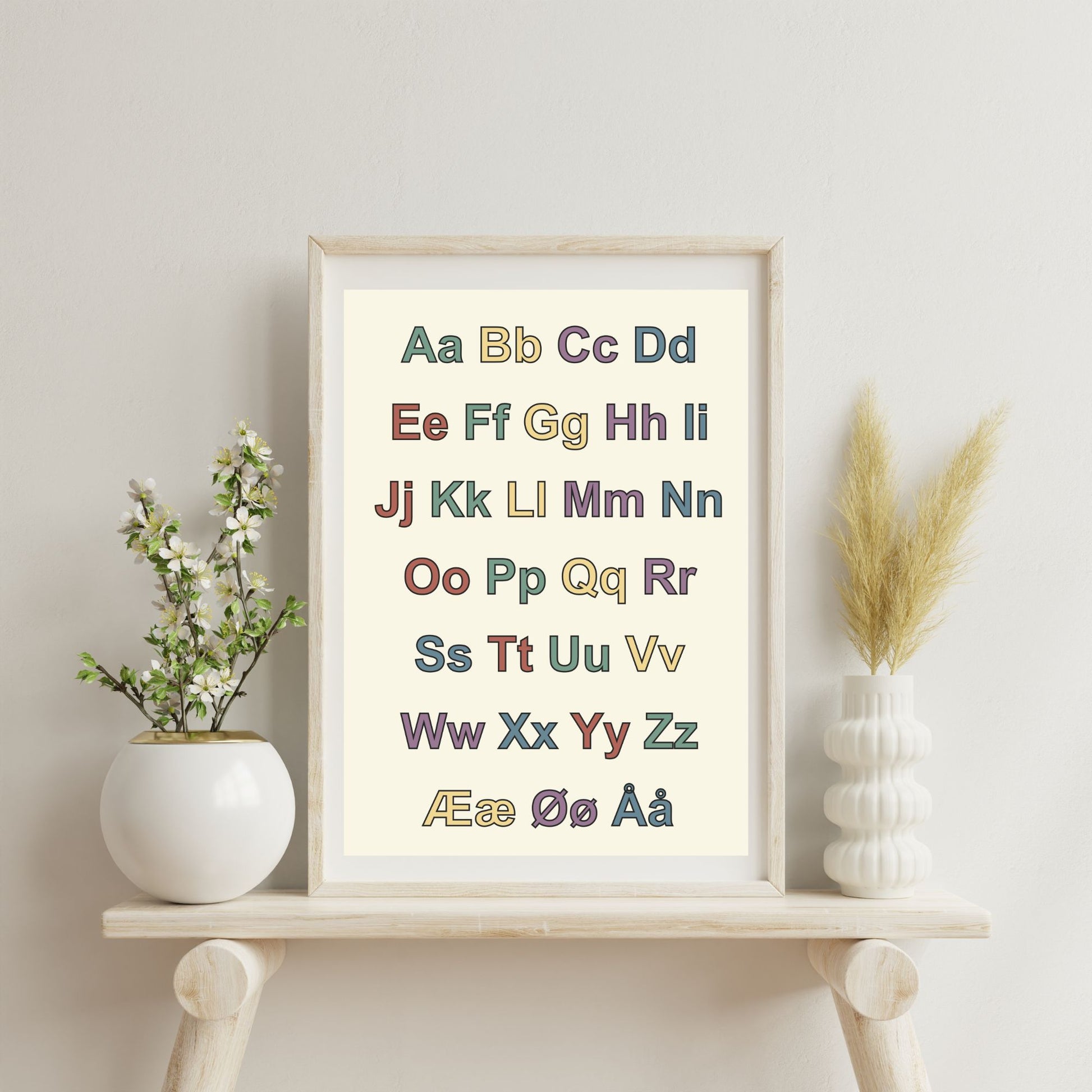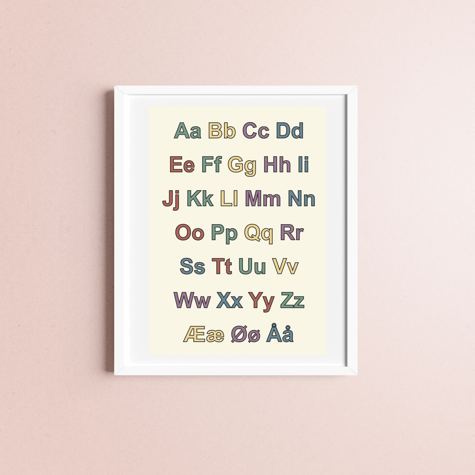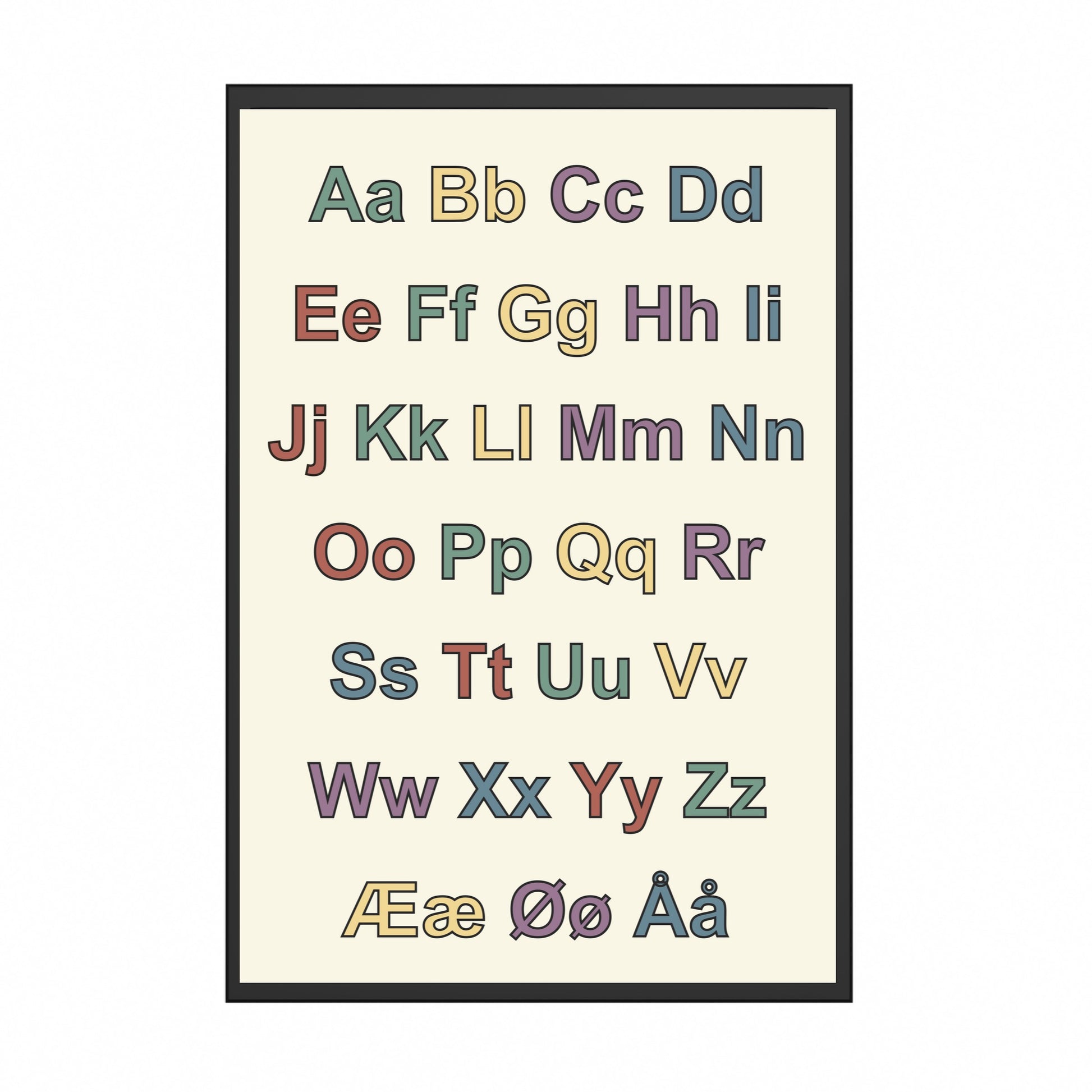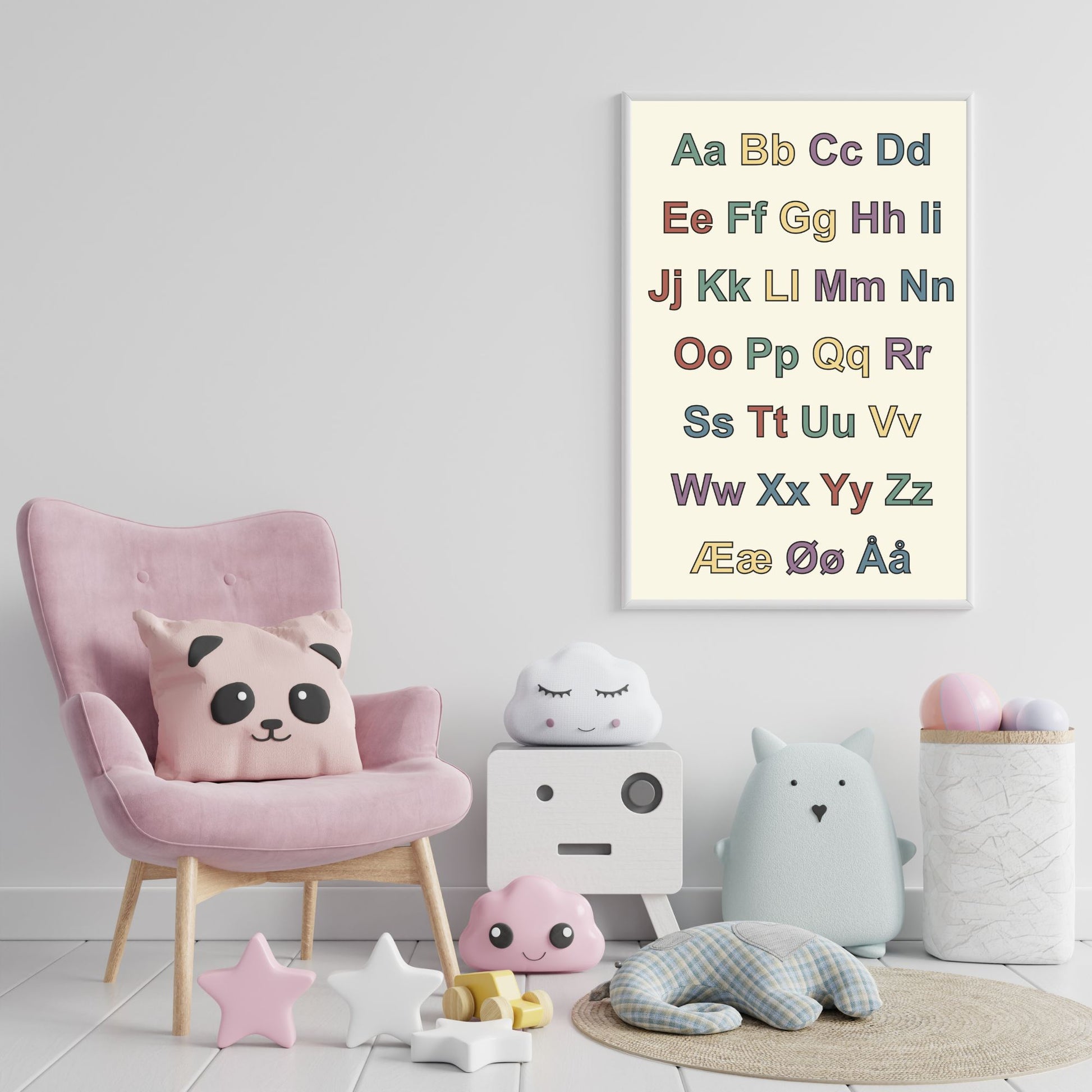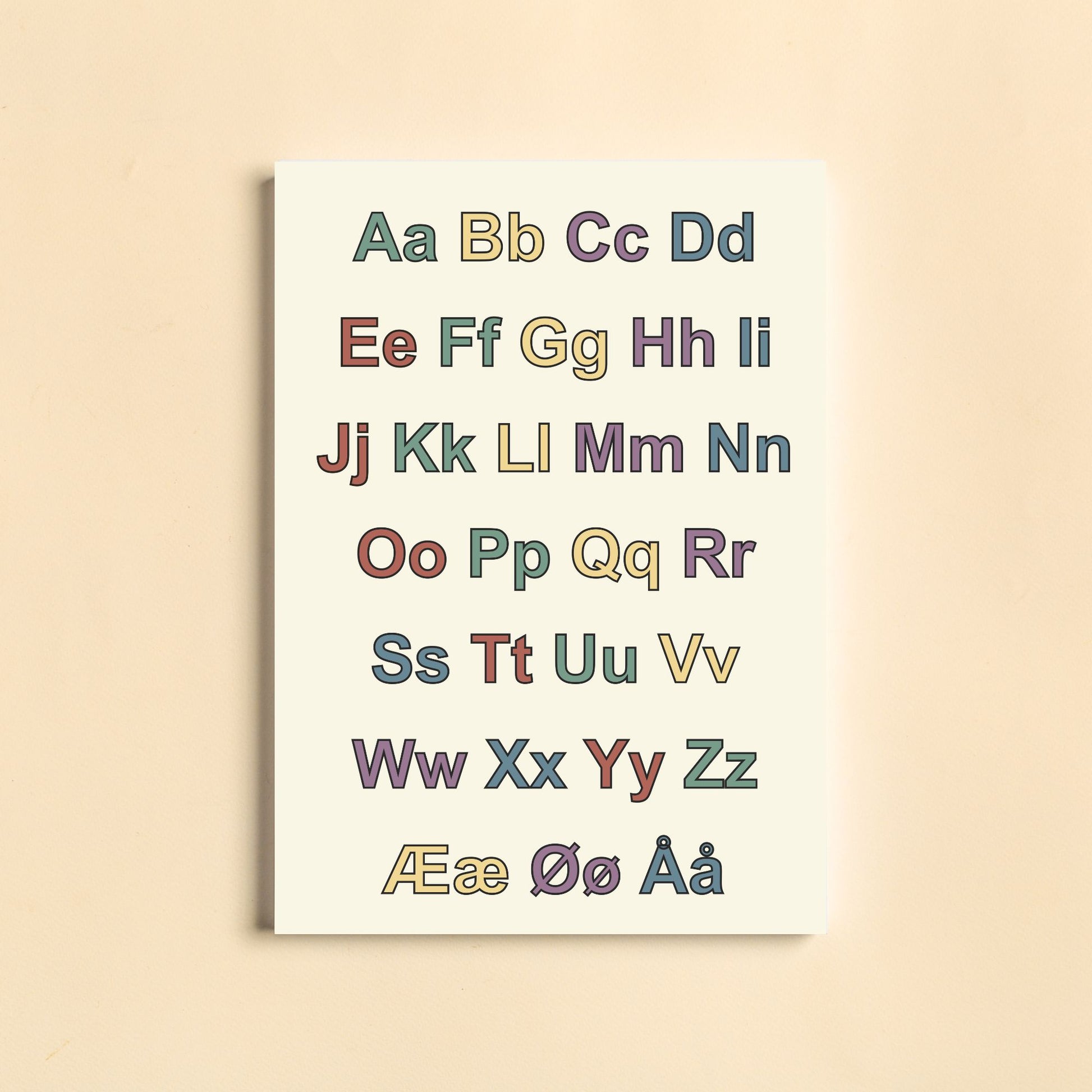 Her får du det norske alfabetet med både store og små bokstaver, i fine farger. Perfekt til den lille som begynner på skolen!