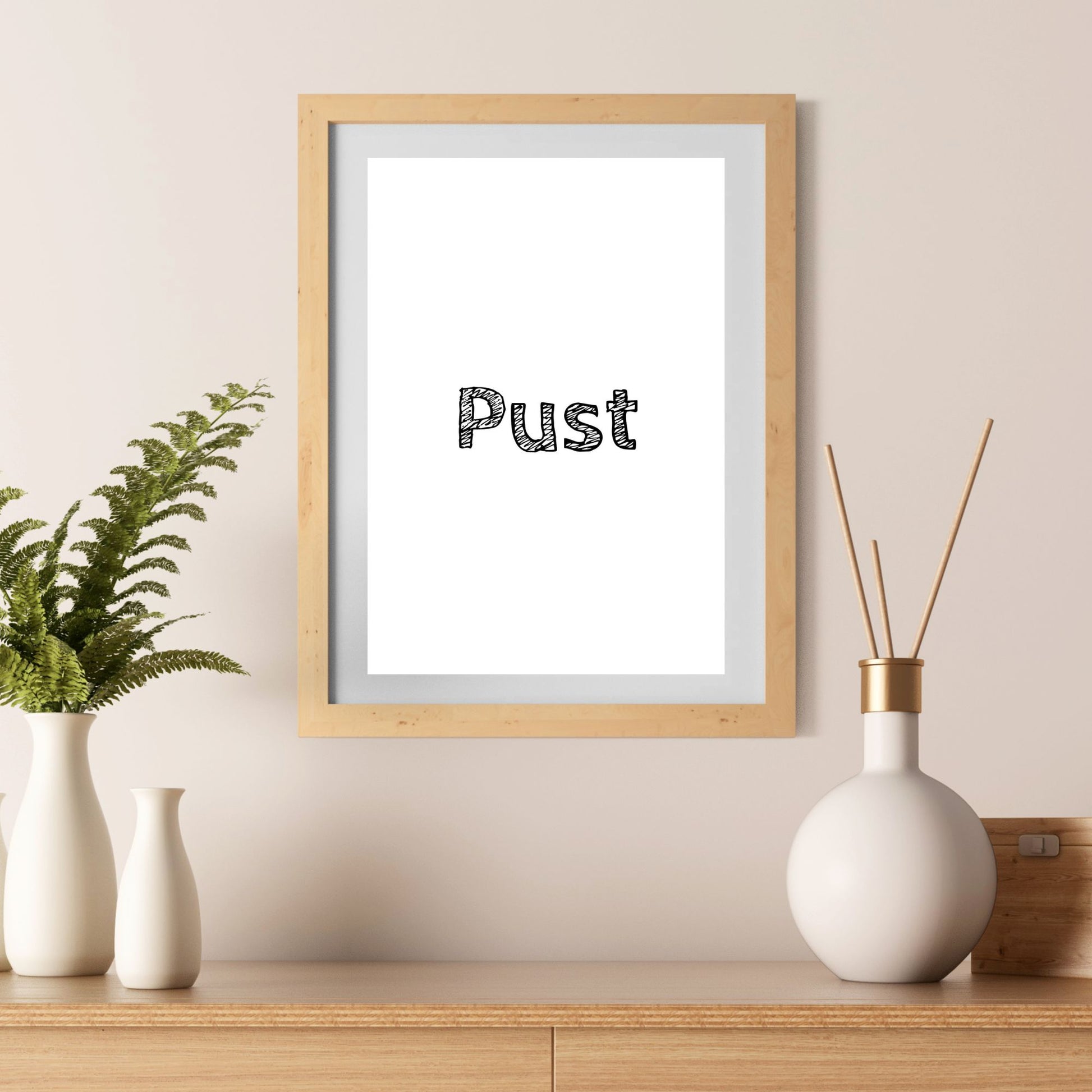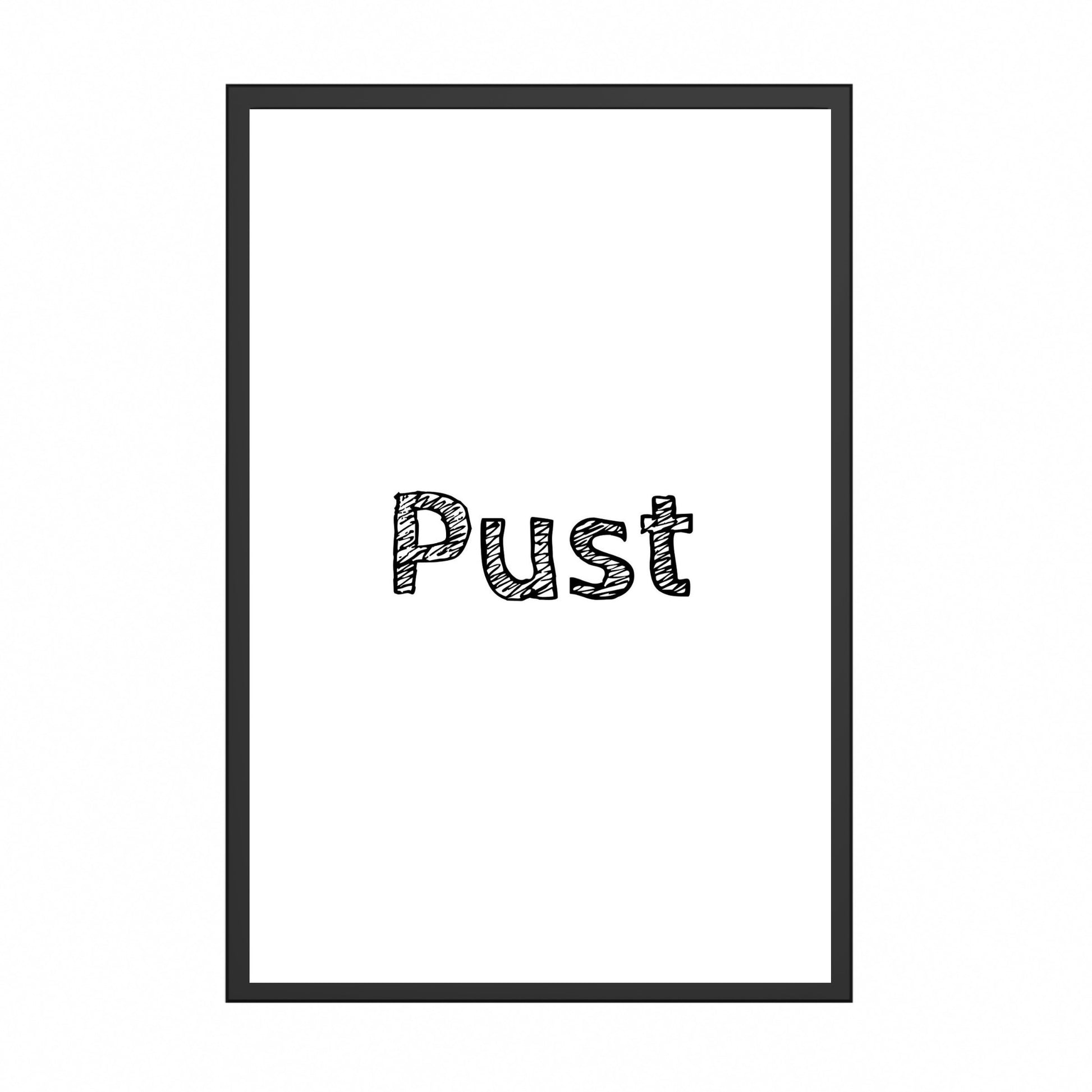 Her har jeg skrevet ordet "Pust" som en vennlig påminnelse i en hektisk hverdag.