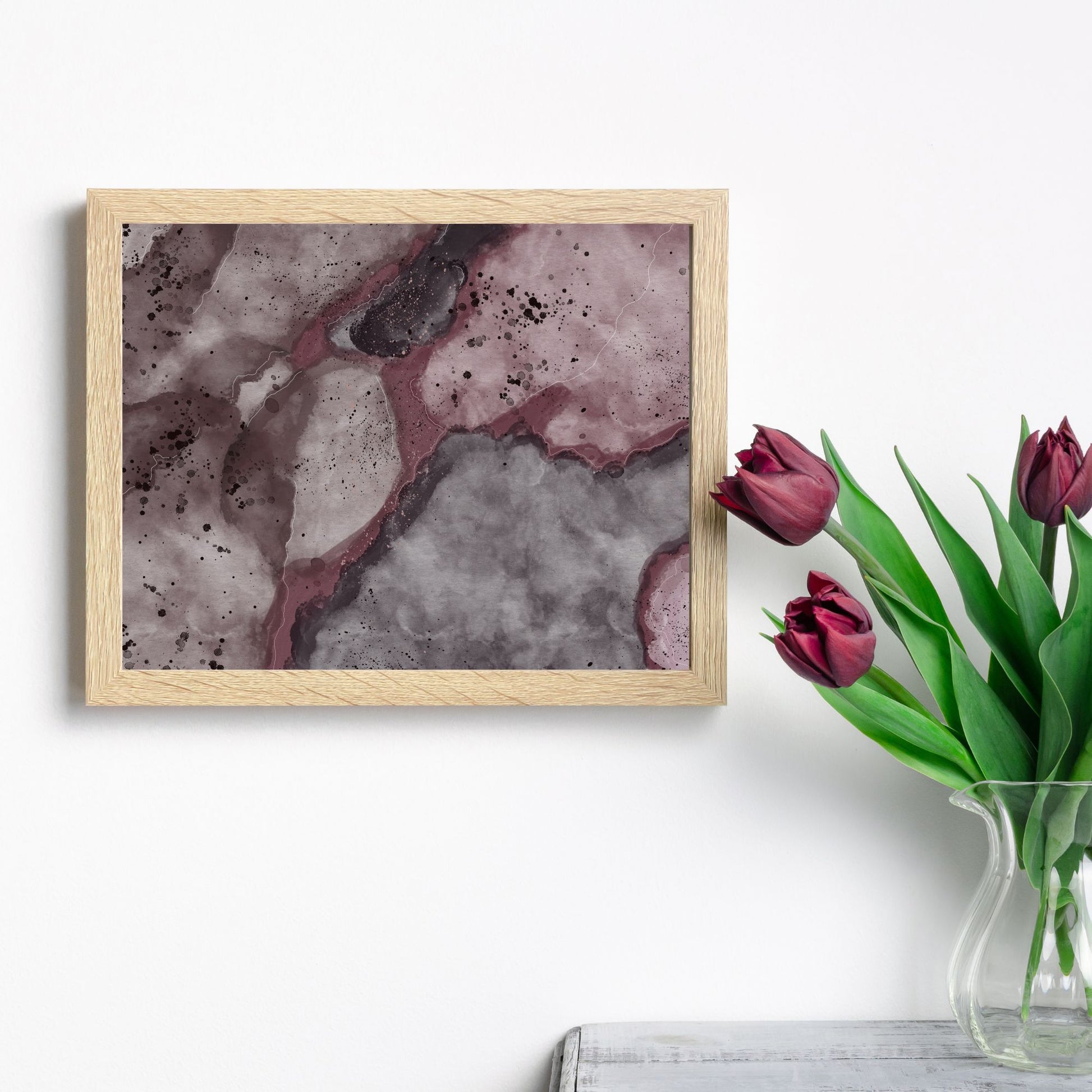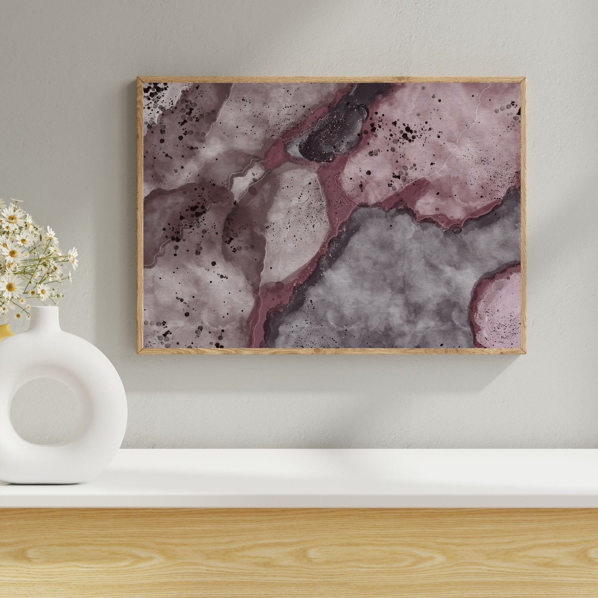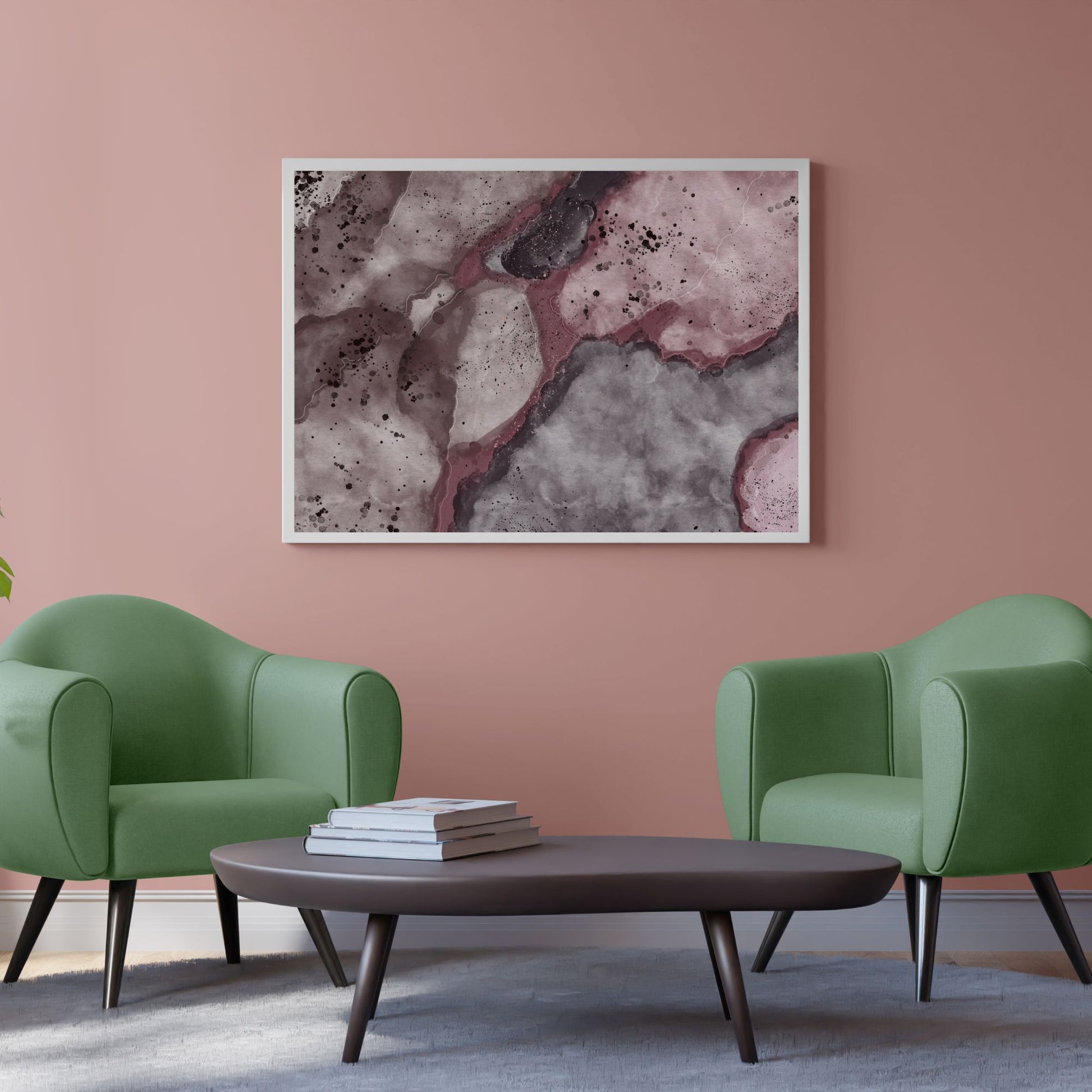 Her har jeg malt abstrakte former i duse rosa- og gråfarger.