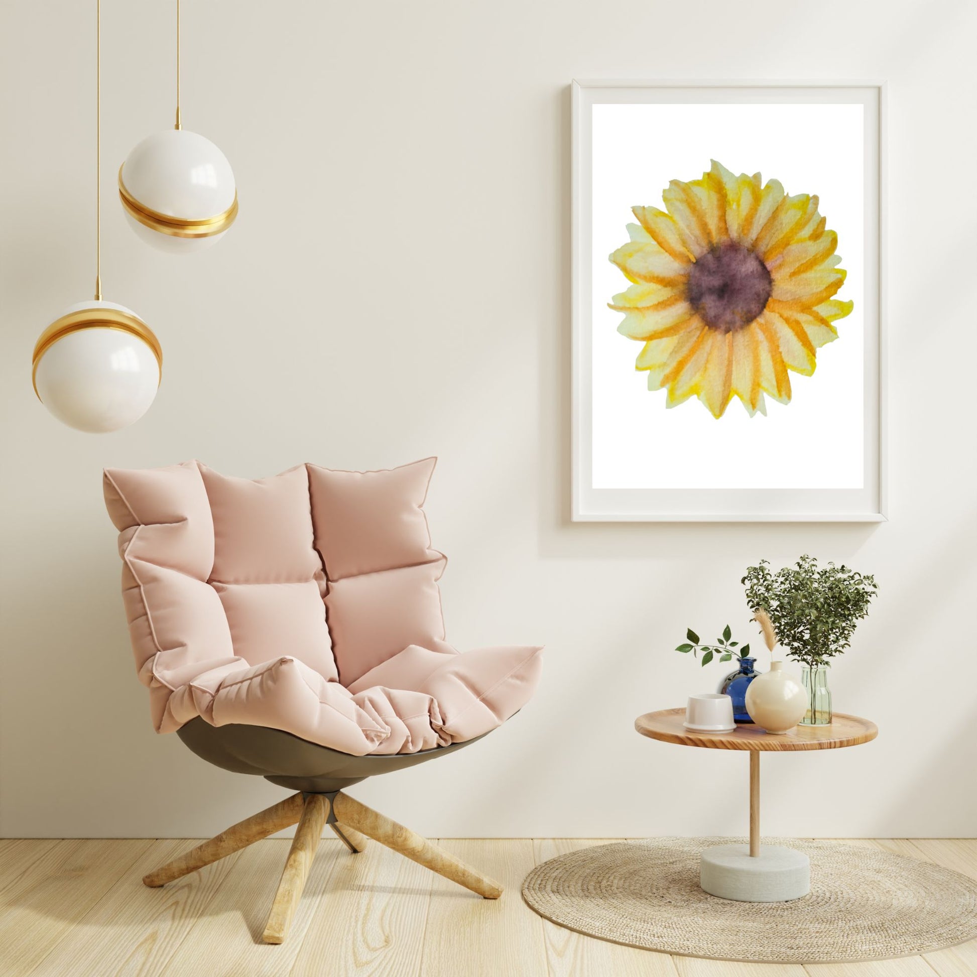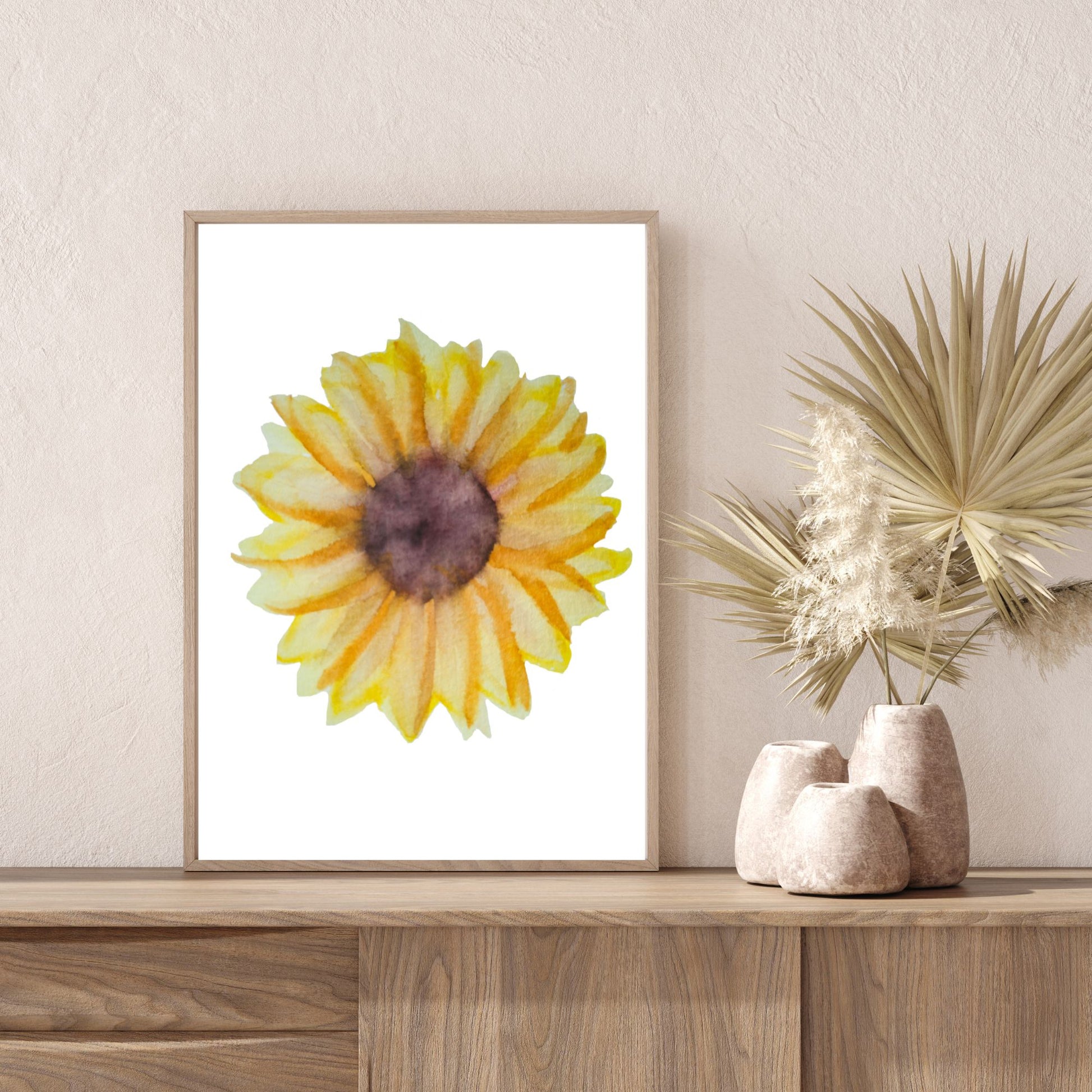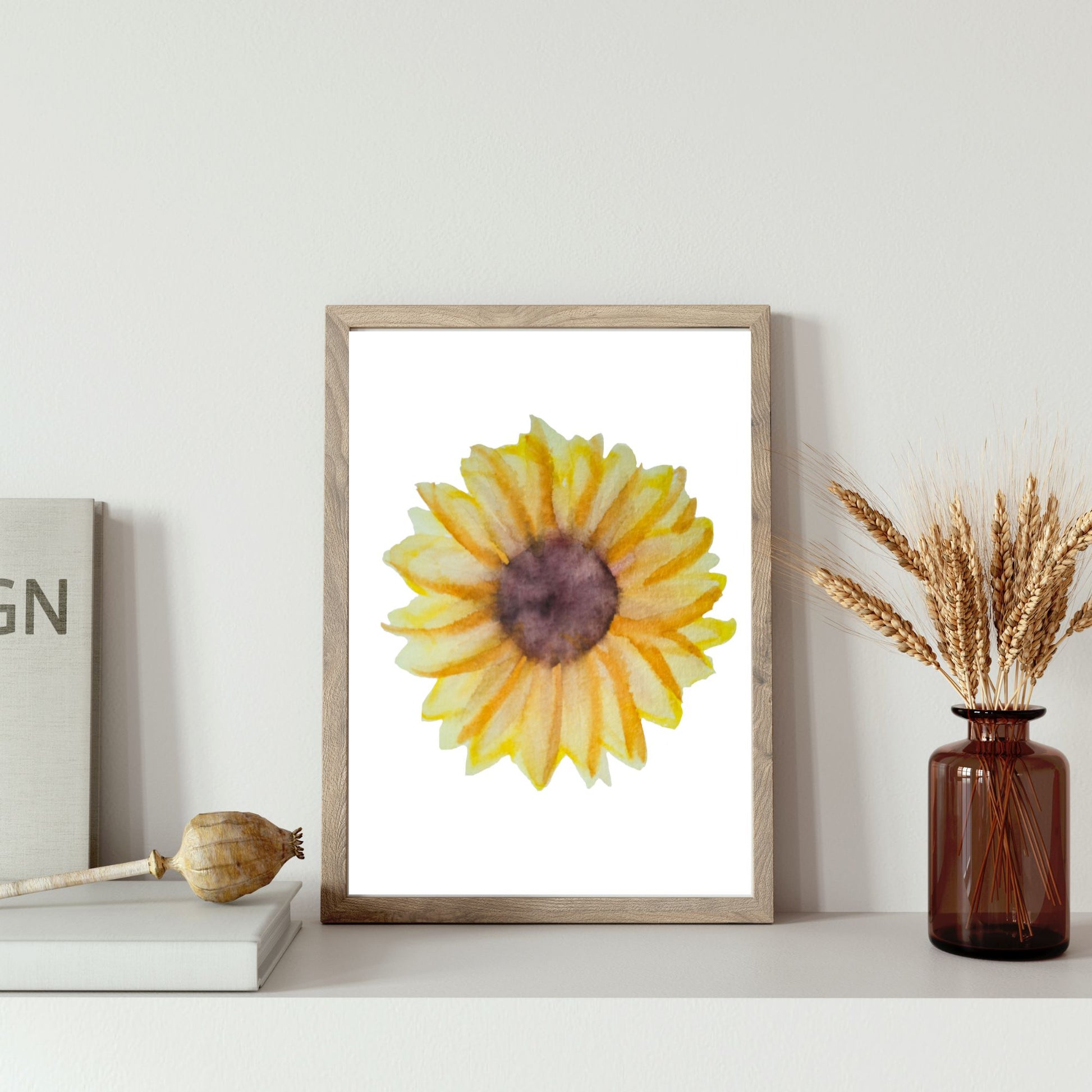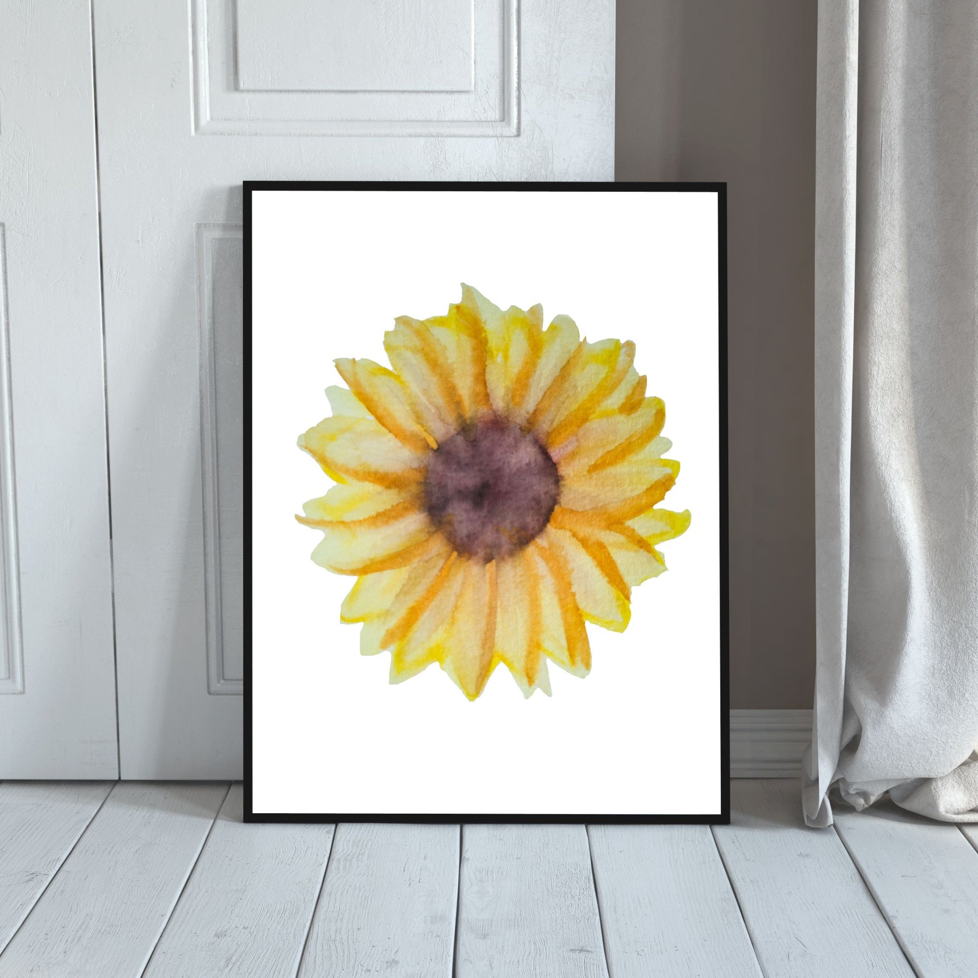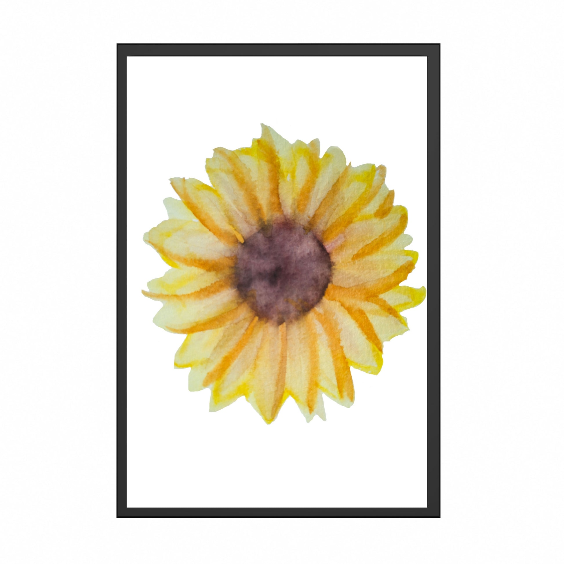 Her har jeg malt en solsikke med akvarellmaling. Nydelig gulfarge og varm brun i kjernen.