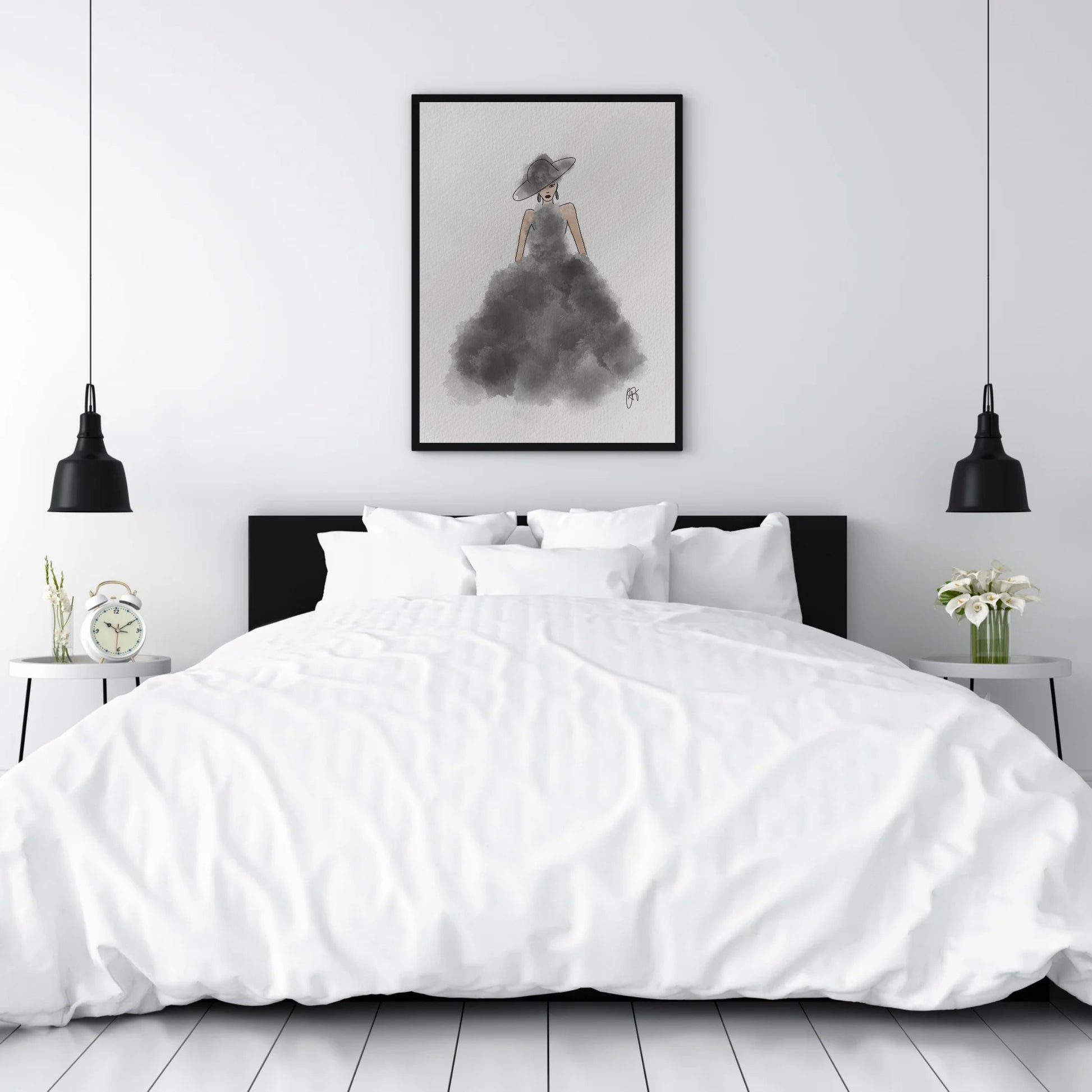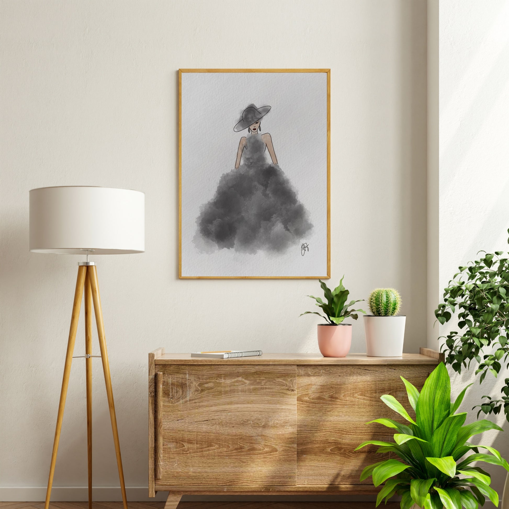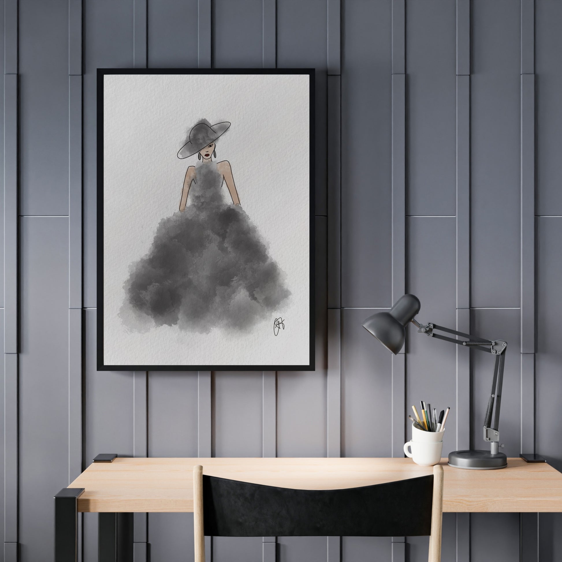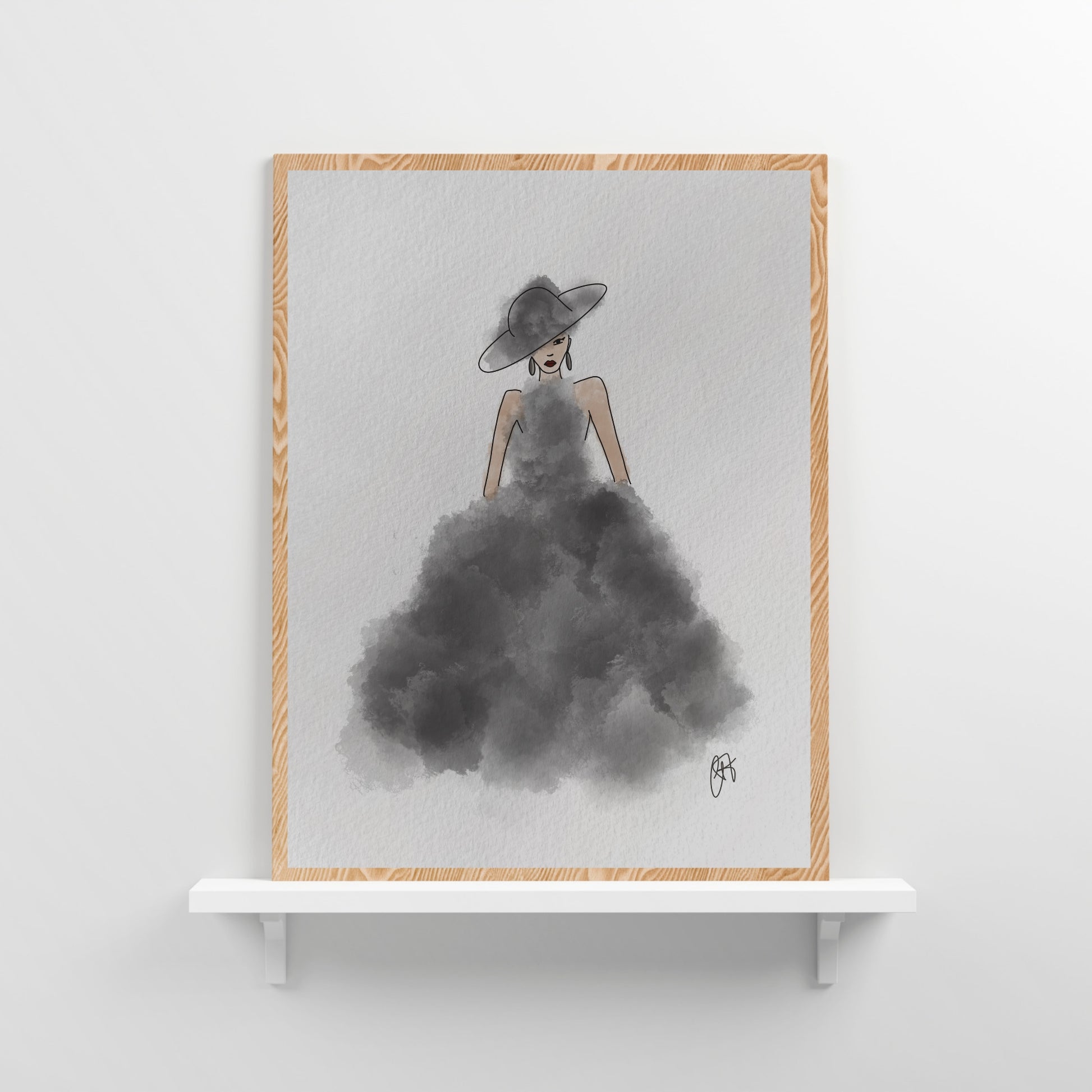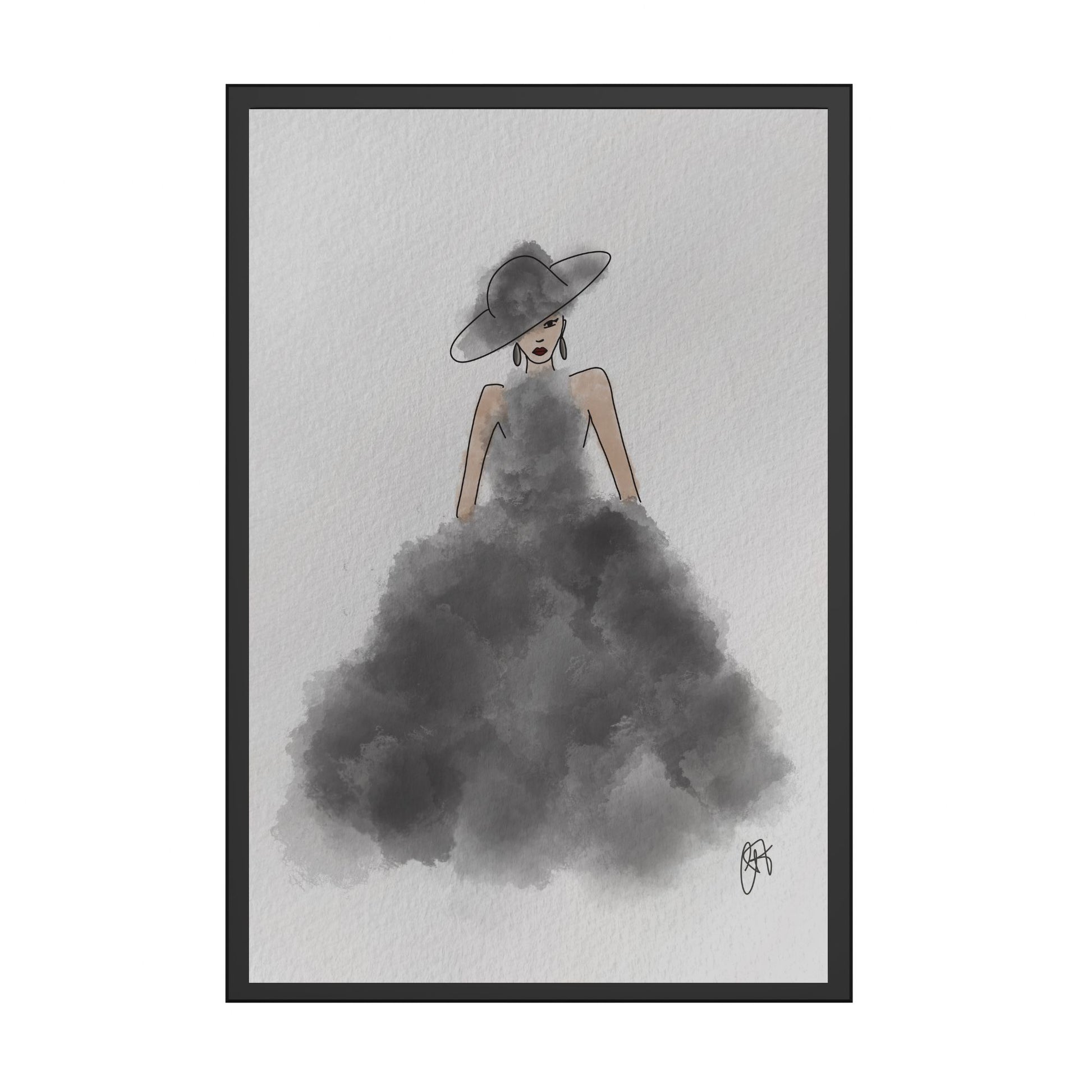 Her har jeg malt en dame med stor gråsvart kjole med matchende hatt og røde lepper. Henne har jeg valgt å kalle "Susan".